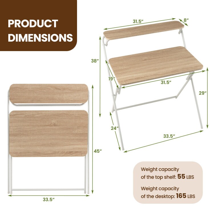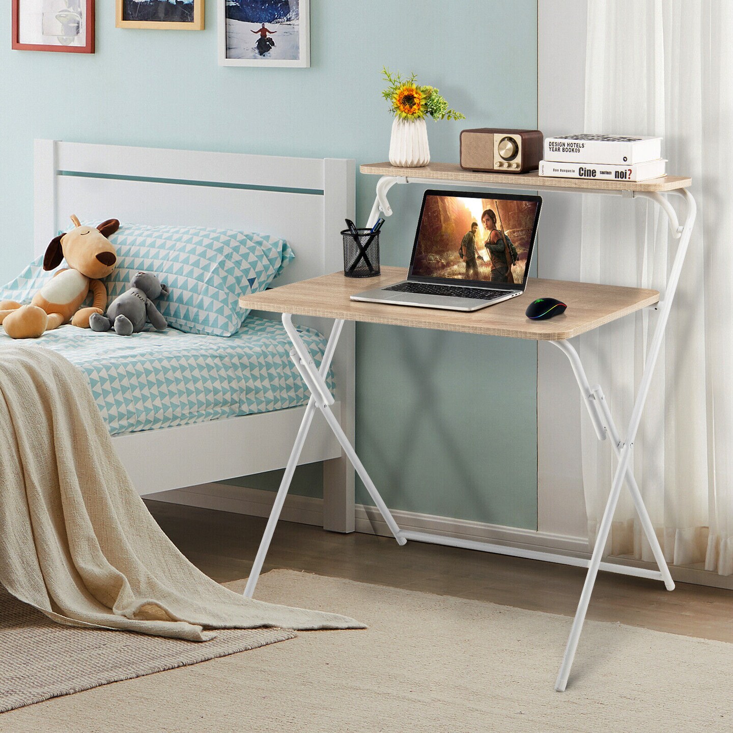 2-Tier Folding Computer Desk Laptop Table No Assembly Required for Home Office