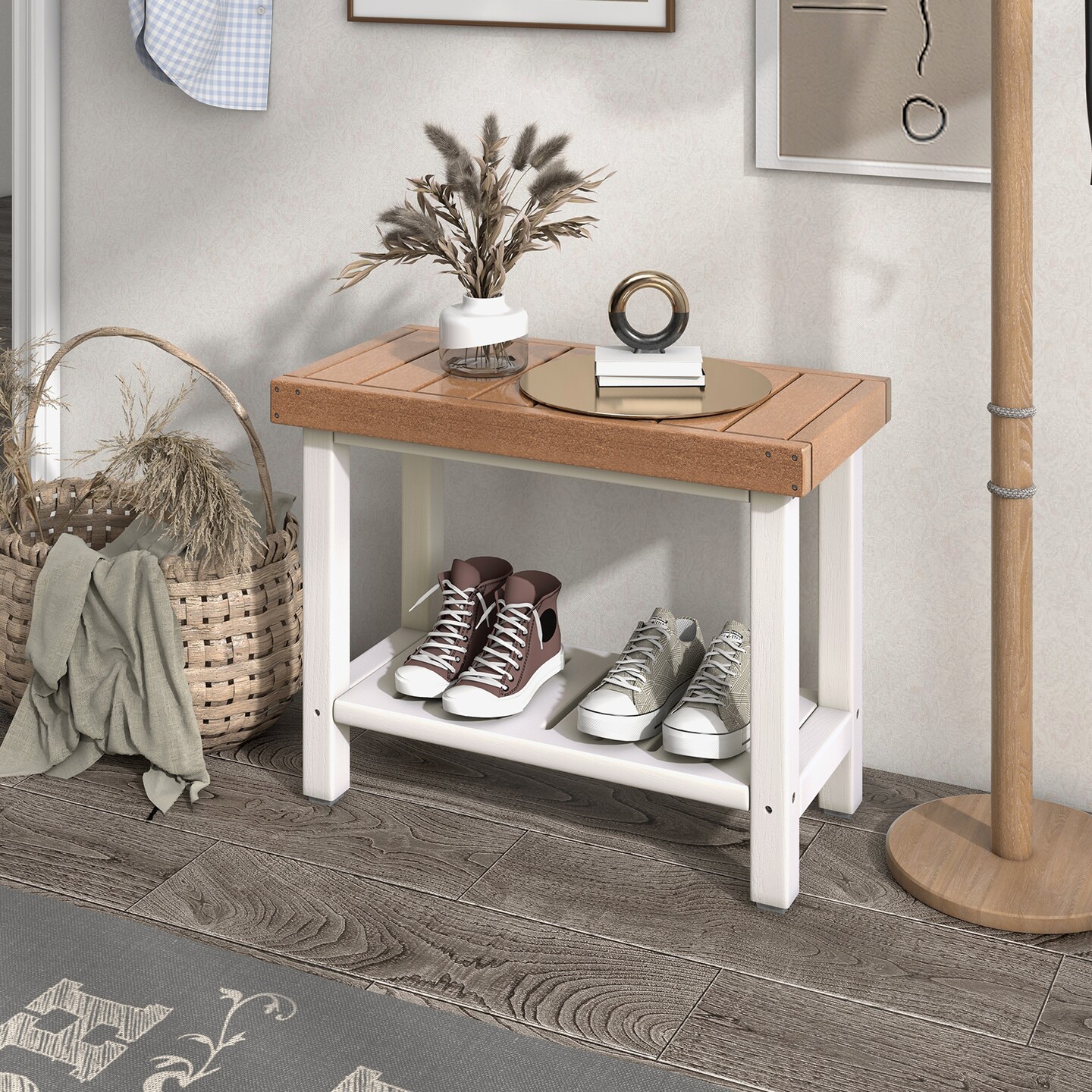 2-Tier HDPE Shower Stool with Storage Shelf and Slatted Seat Perfect Addition to Bedroom or Living Room