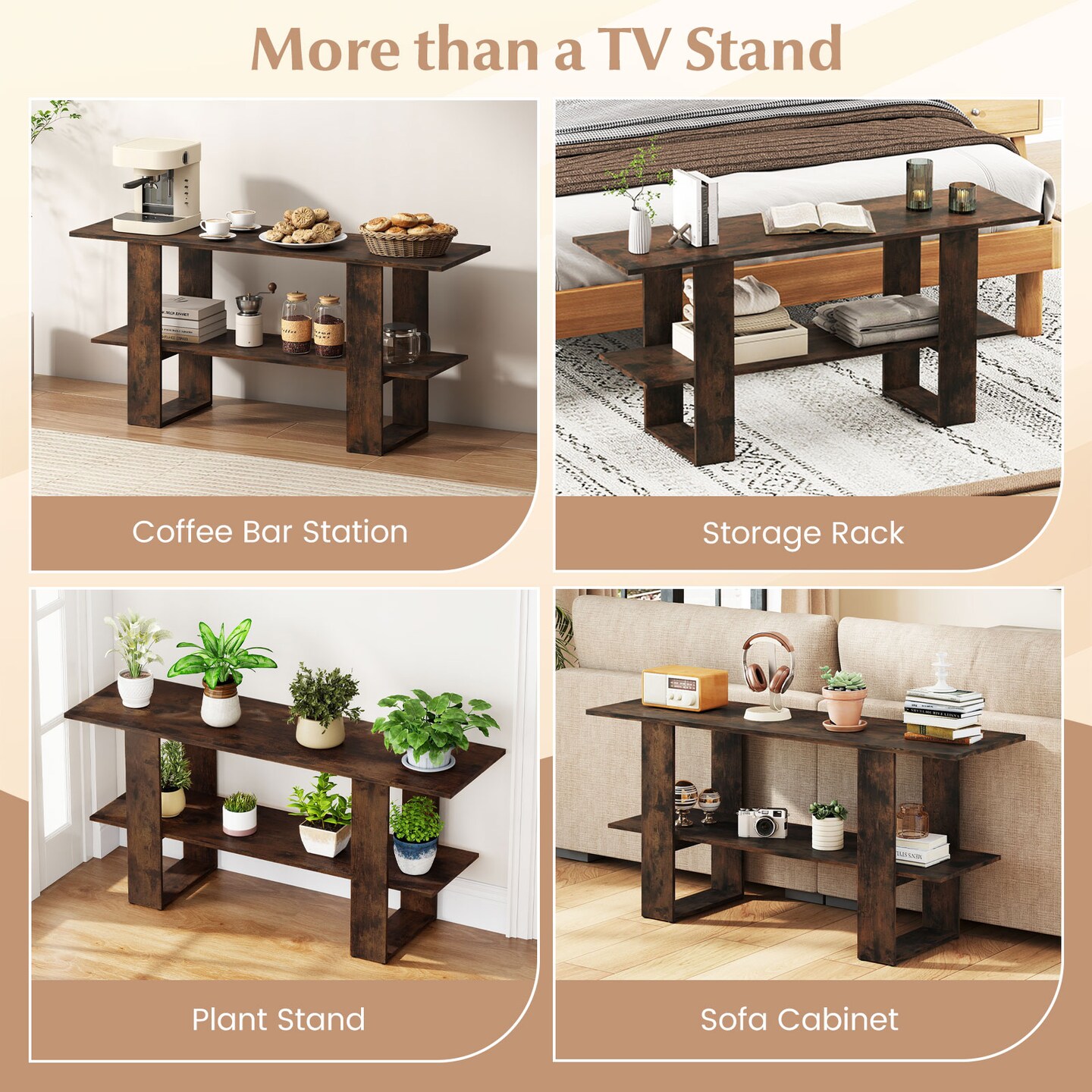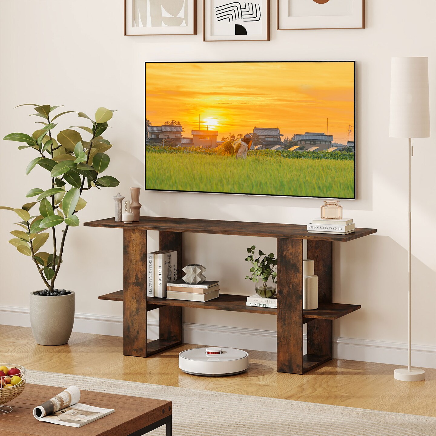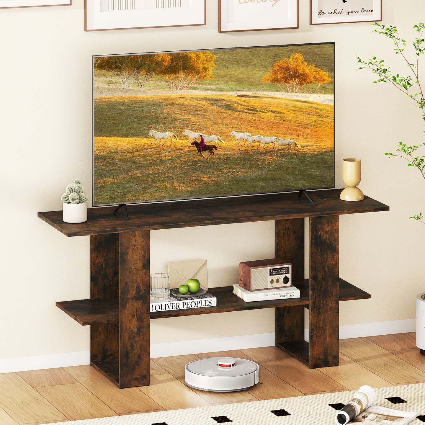2-Tier TV Stand for TVs up to 55" with Open Shelf and Storage Console Table
