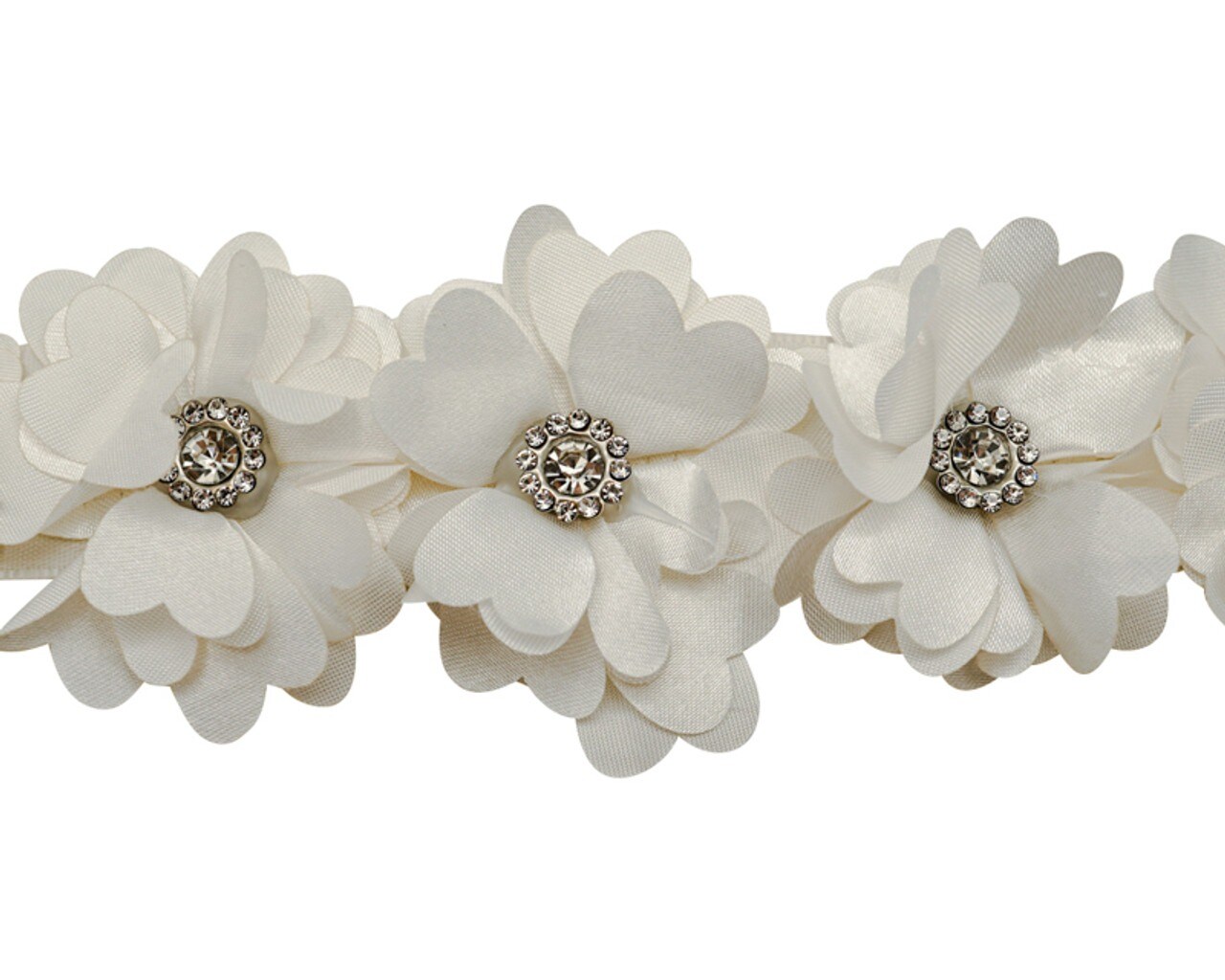 2"x 10 yards Ivory and Ivory 3D Satin Flower Trim with Diamond Center