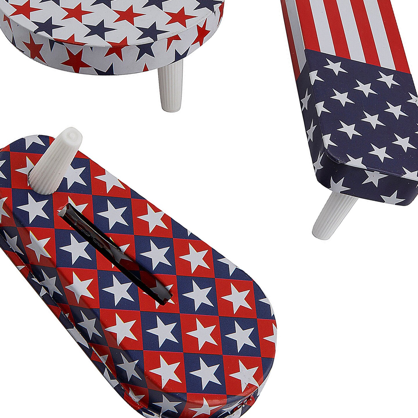 3 1/2" Diam Bulk Patriotic Red, White & Blue Metal Noisemakers 50 Pieces