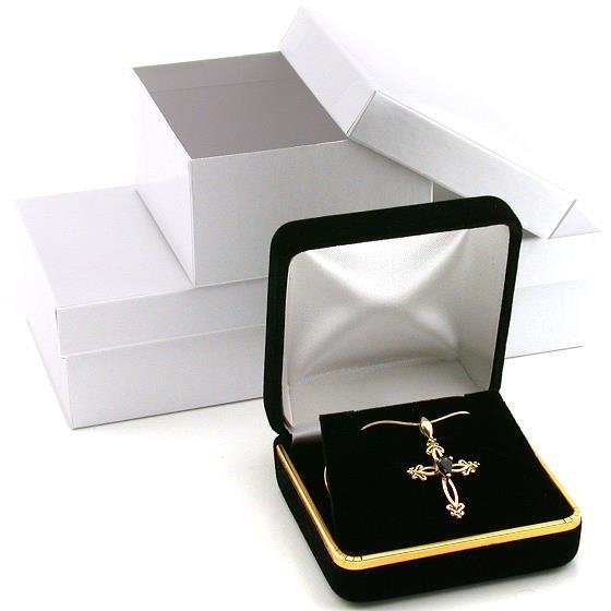3 Black Velvet Necklace Pendant Gift Boxes With Brass Trim