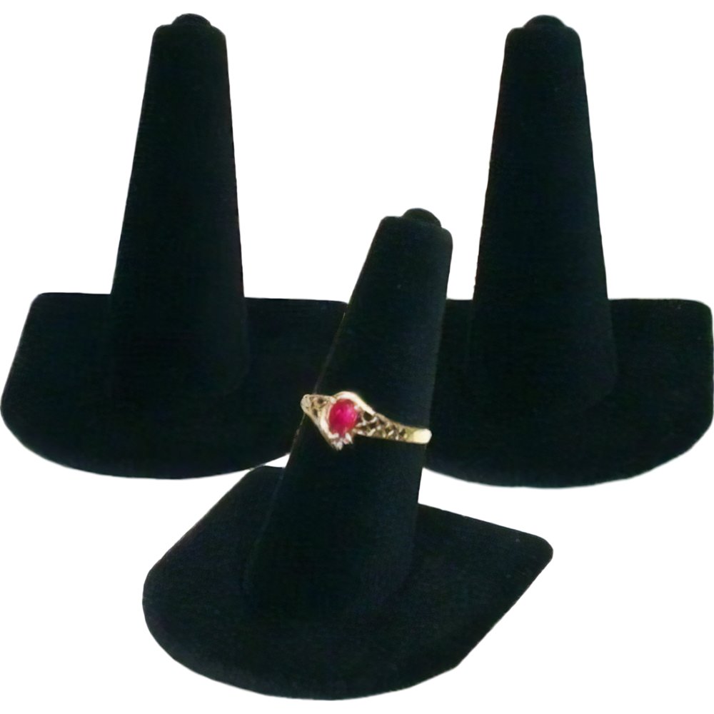 3 Black Velvet Ring Finger Jewelry Holder Showcase Display Stands