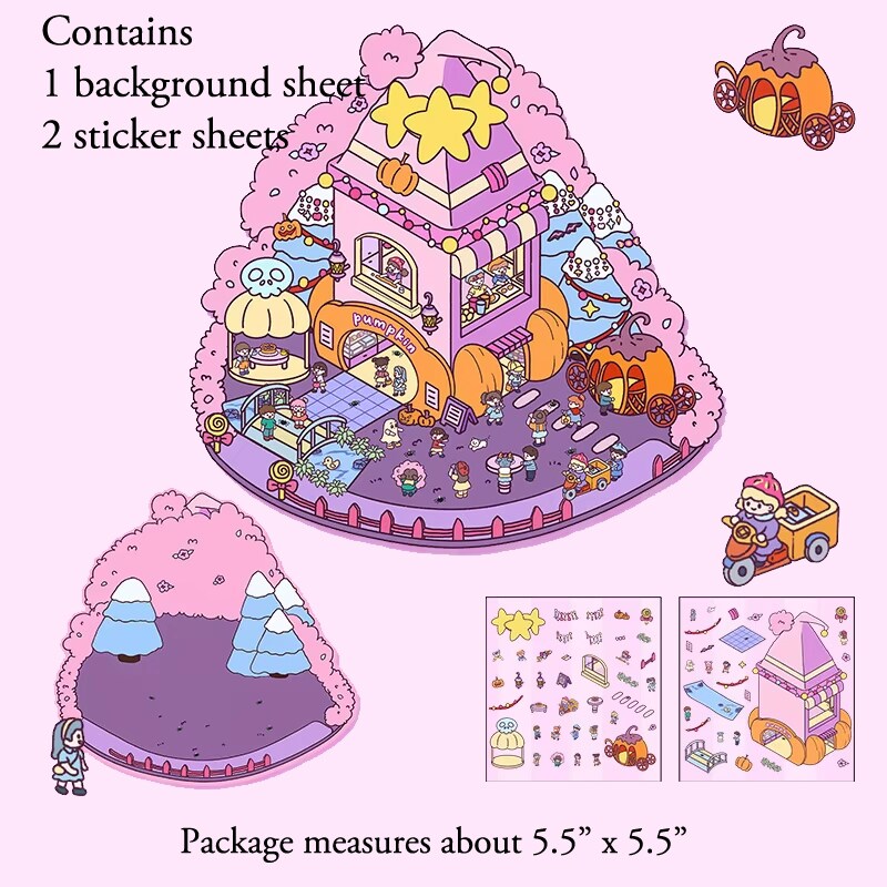 3 Cute Sticker Scenes with Tweezers, Isometric DIY Sticker Activities, Adorabilities