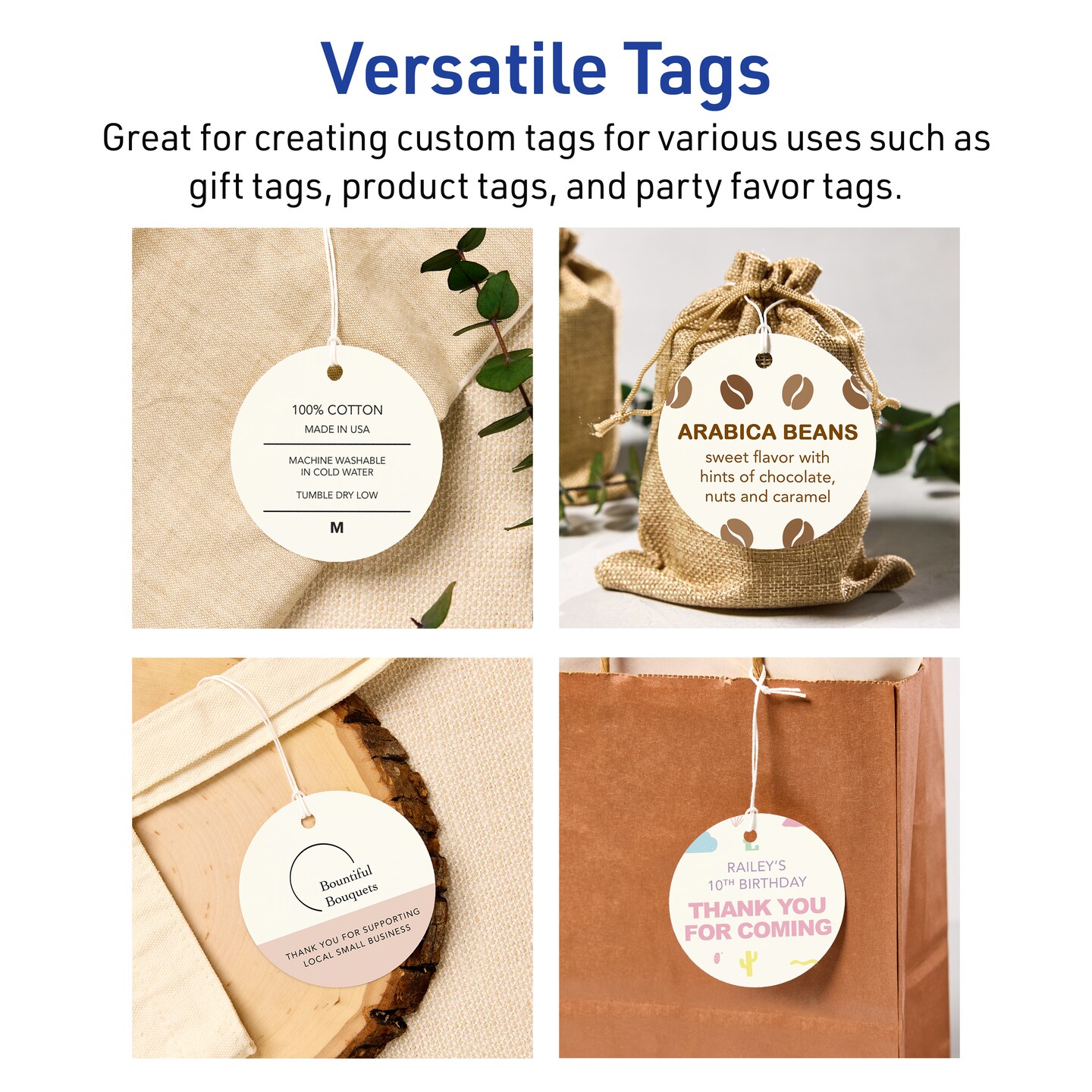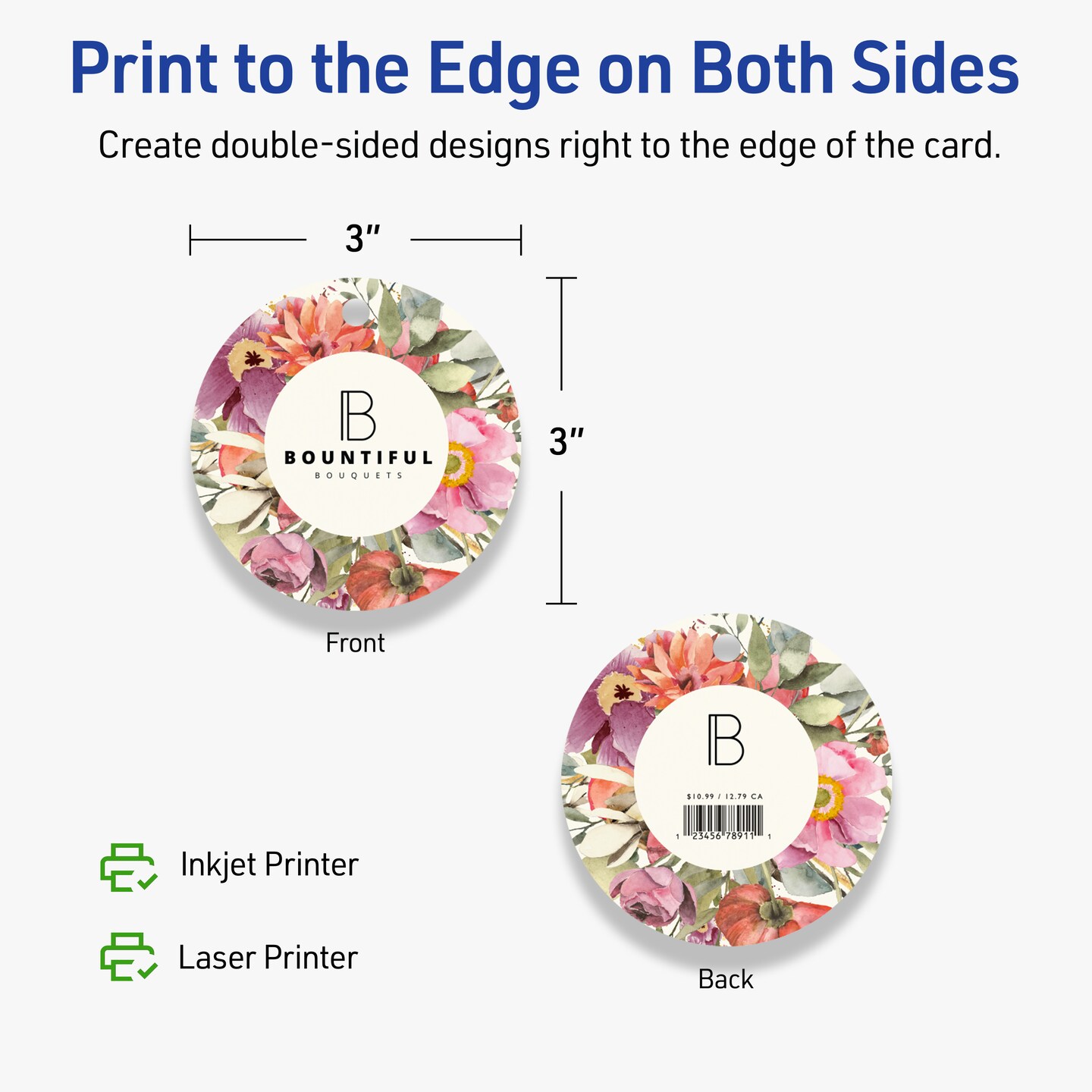 3" Diameter Round, Matte Ivory Printable Tags