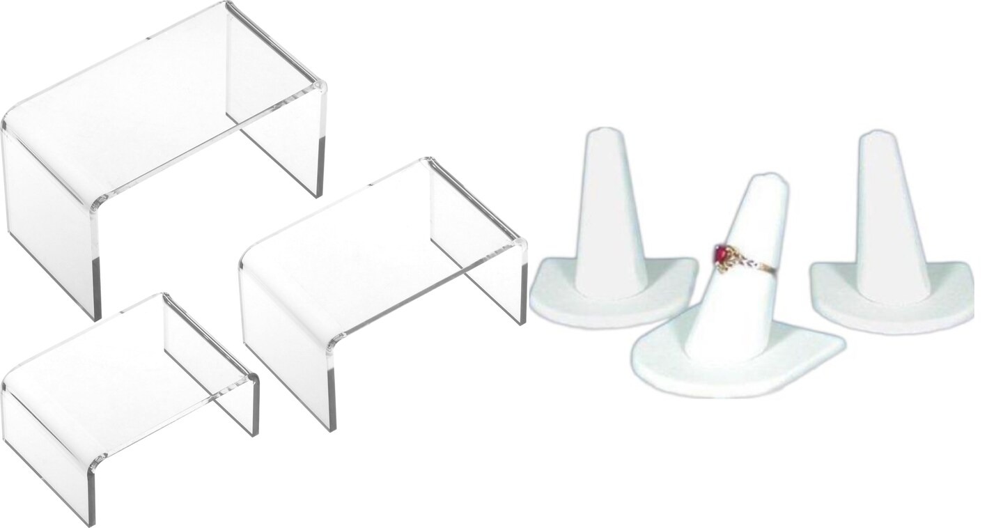 3 Faux Leather Ring Finger Display 3 Acrylic Risers