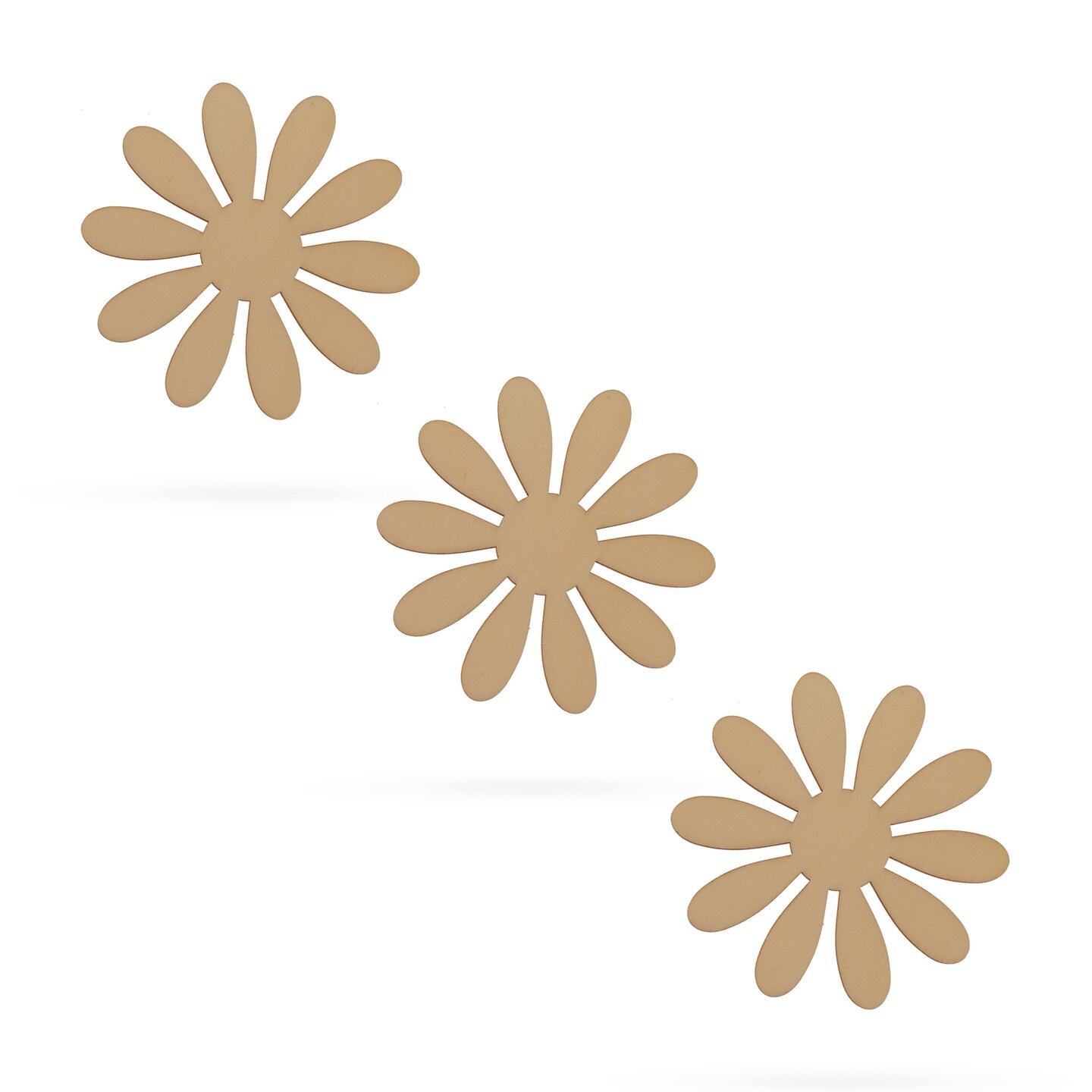 3 Flowers Unfinished Wooden Shapes Craft Cutouts DIY Unpainted 3D Plaques 4 Inches
