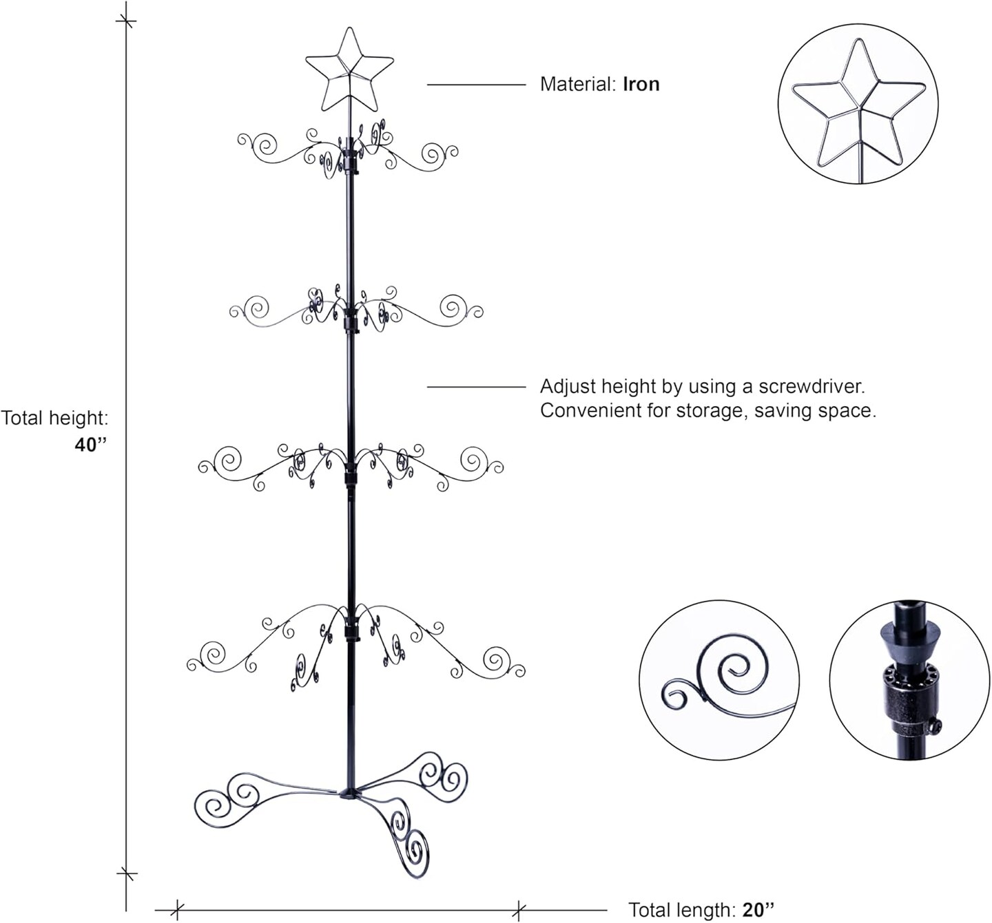 3 FT Iron Christmas Tree Ornament Display Stand - 56 Hooks