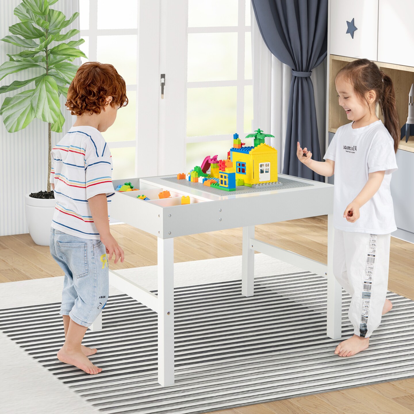 3 in 1 Wooden Kids Table with Storage and Double-Sided Tabletop