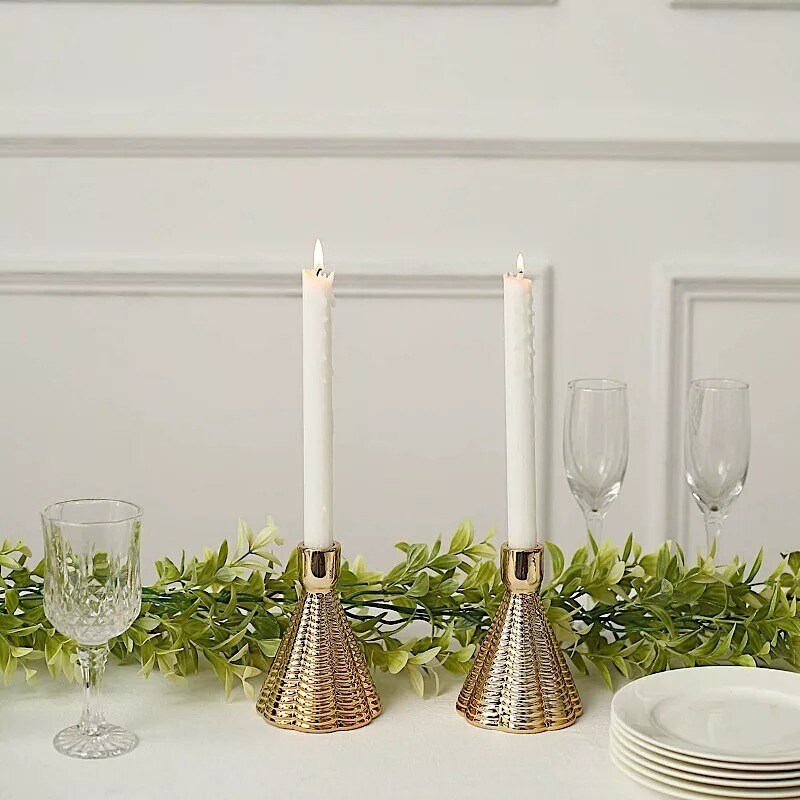 3 Metallic Gold 5 in Ribbed Cone Shaped Ceramic Taper CANDLE HOLDERS Party Event