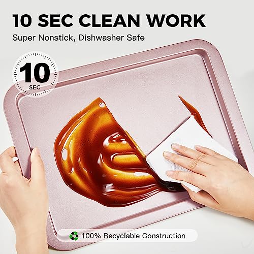 3 Pack Baking Sheet Pan Set, Cookie Sheet for Oven, Nonstick Bakeware Sets with Wider Grips, Half/Jelly Roll/Quarter Baking Tray, Premium, Dishwasher Safe-Pink