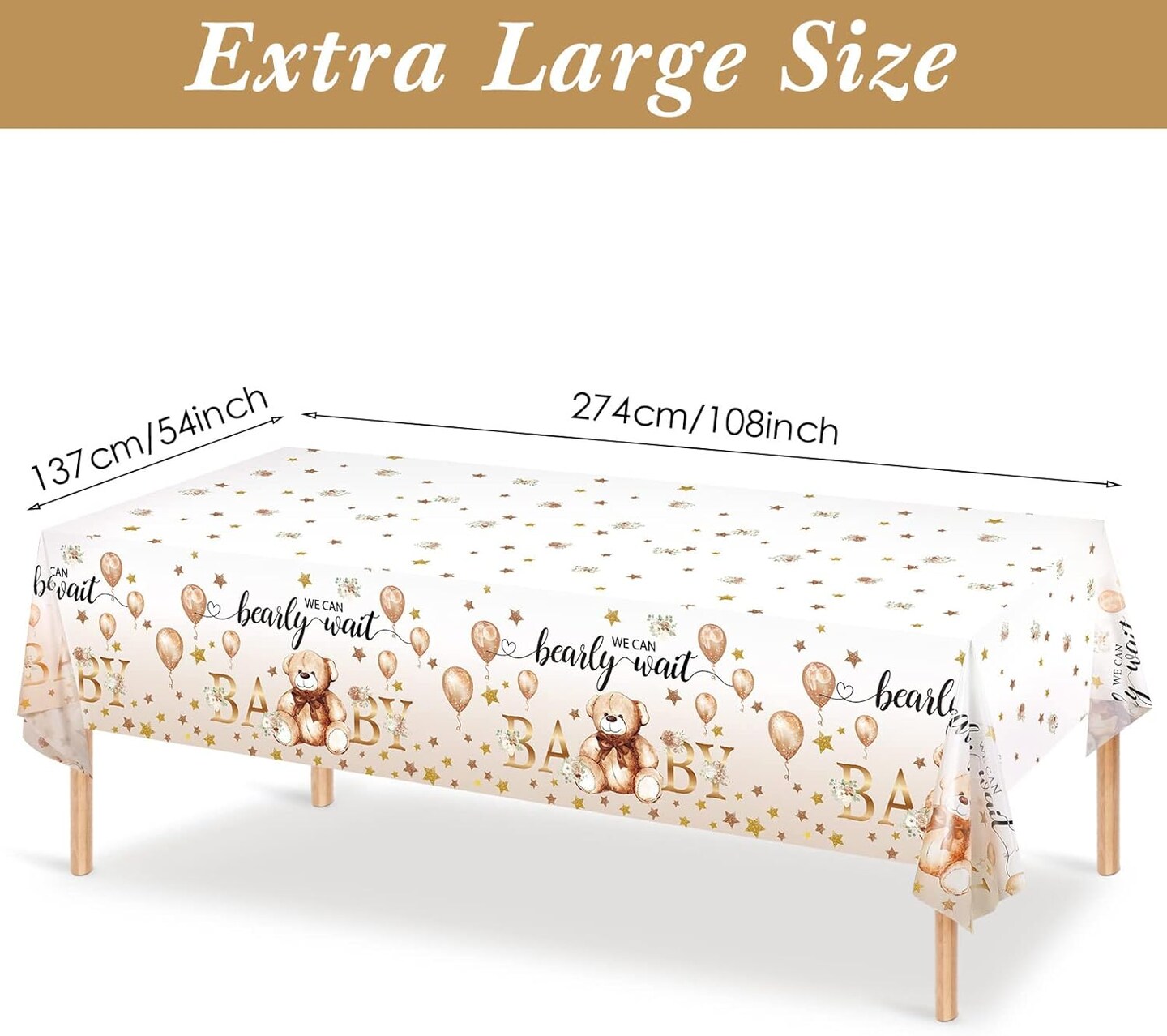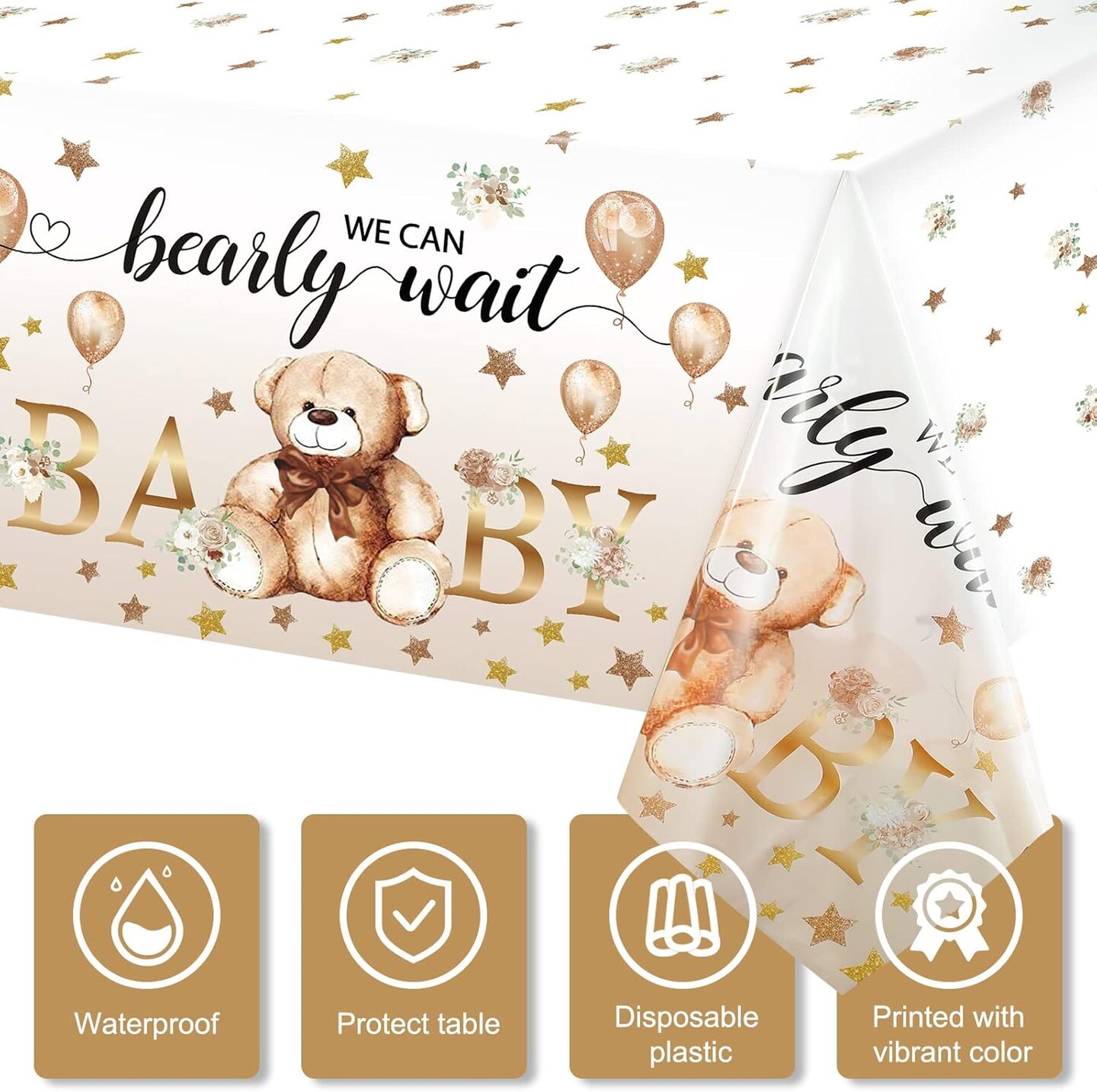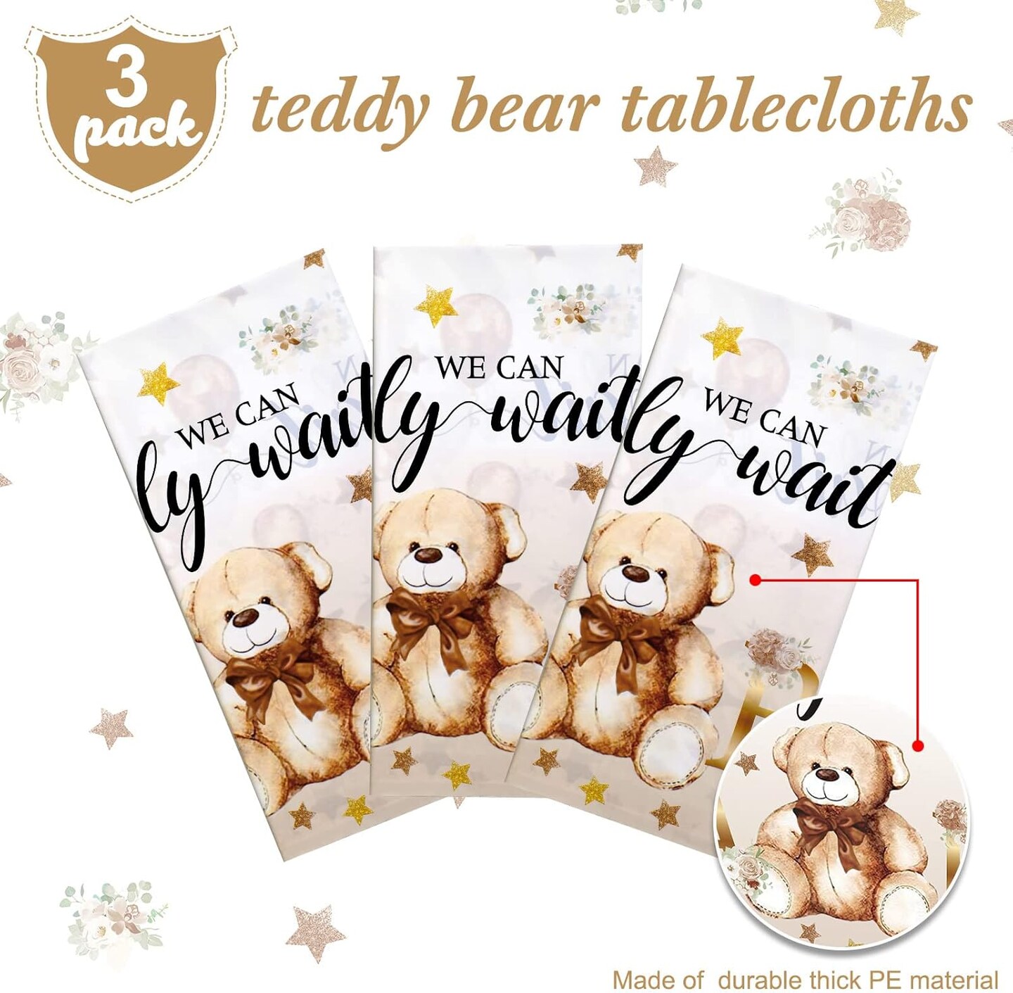 3 Pack Bear Baby Shower Tablecloths Gender Reveal Table Covers Rectangle Plastic Table Cloths for Bear Baby Shower Gender Reveal Party Decorations, 54 x 108 Inch