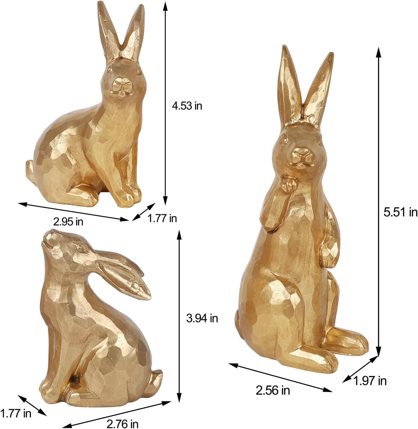 3 Pack Easter Bunny Figurines Decor, Mini Resin Golden Bunnies Spring Sculpture Tabletop Ornament