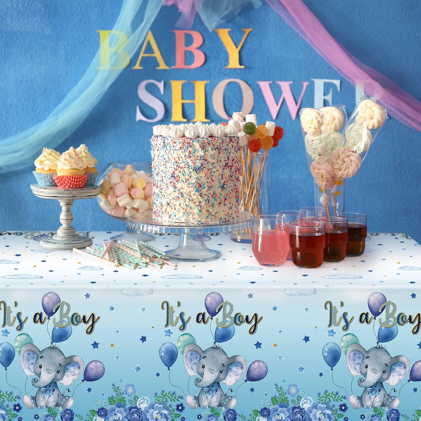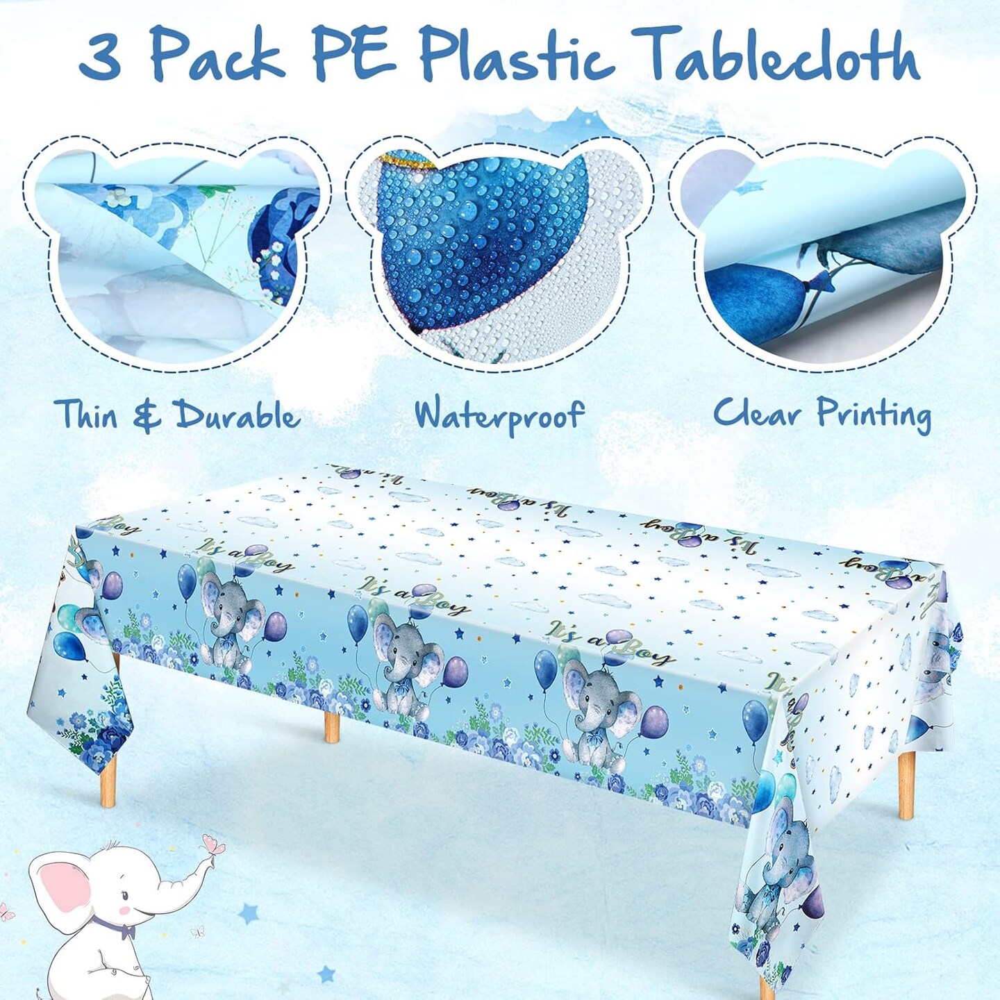 3 Pack Elephant Baby Shower Tablecloth