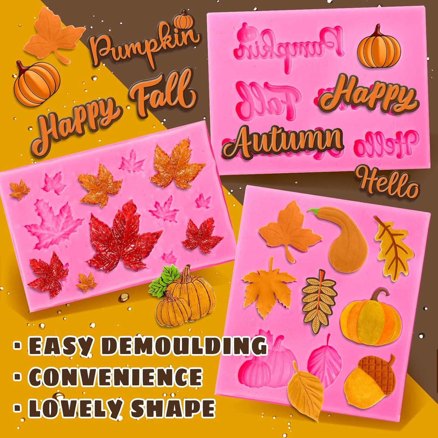 3 Pack Fall Fondant Silicone Molds