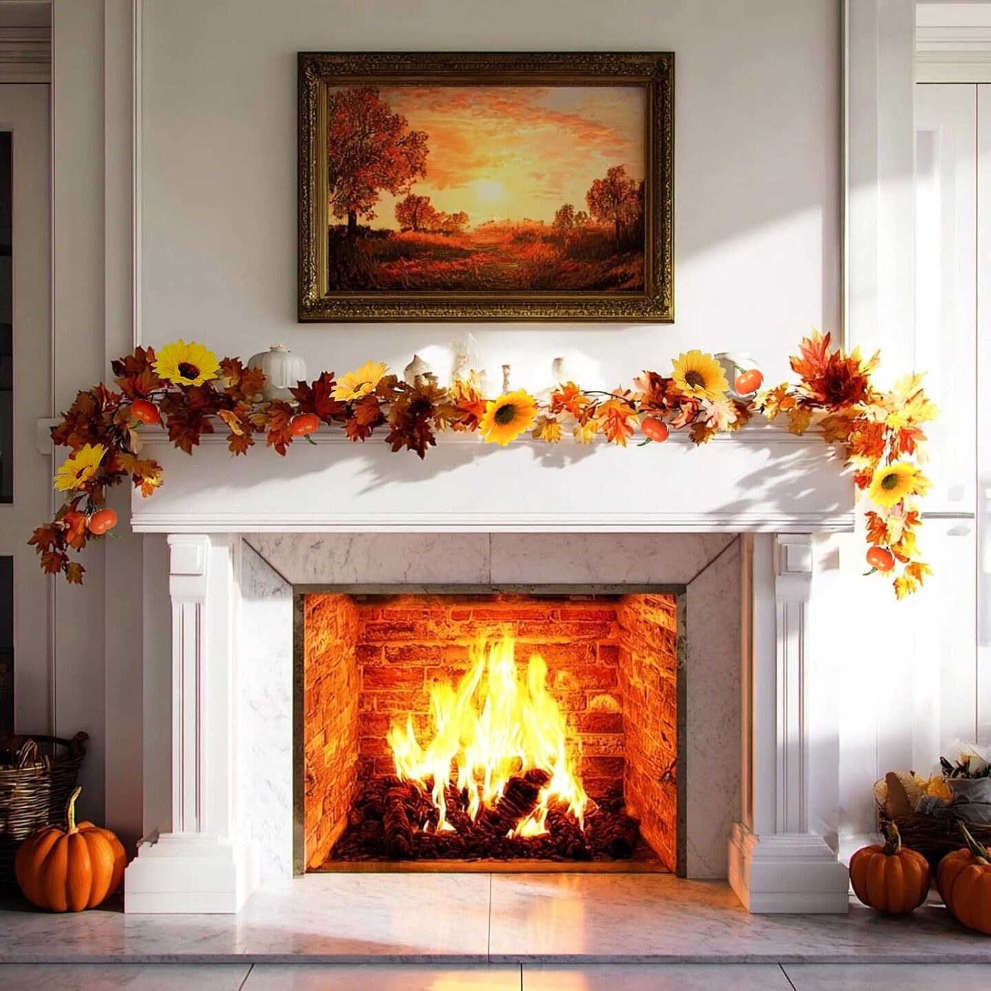 3 Pack Fall Garland for Mantle - 5.6Ft Artificial Maple Vine with Pumpkins & Sunflowers