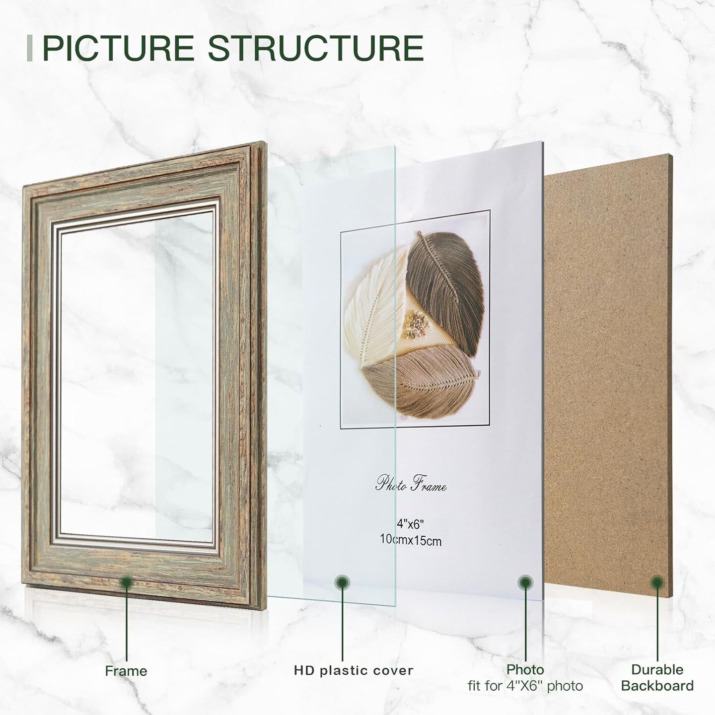 3 Pack Farmhouse Rustic 4x6 Inch Picture Frames (Mix Colors)