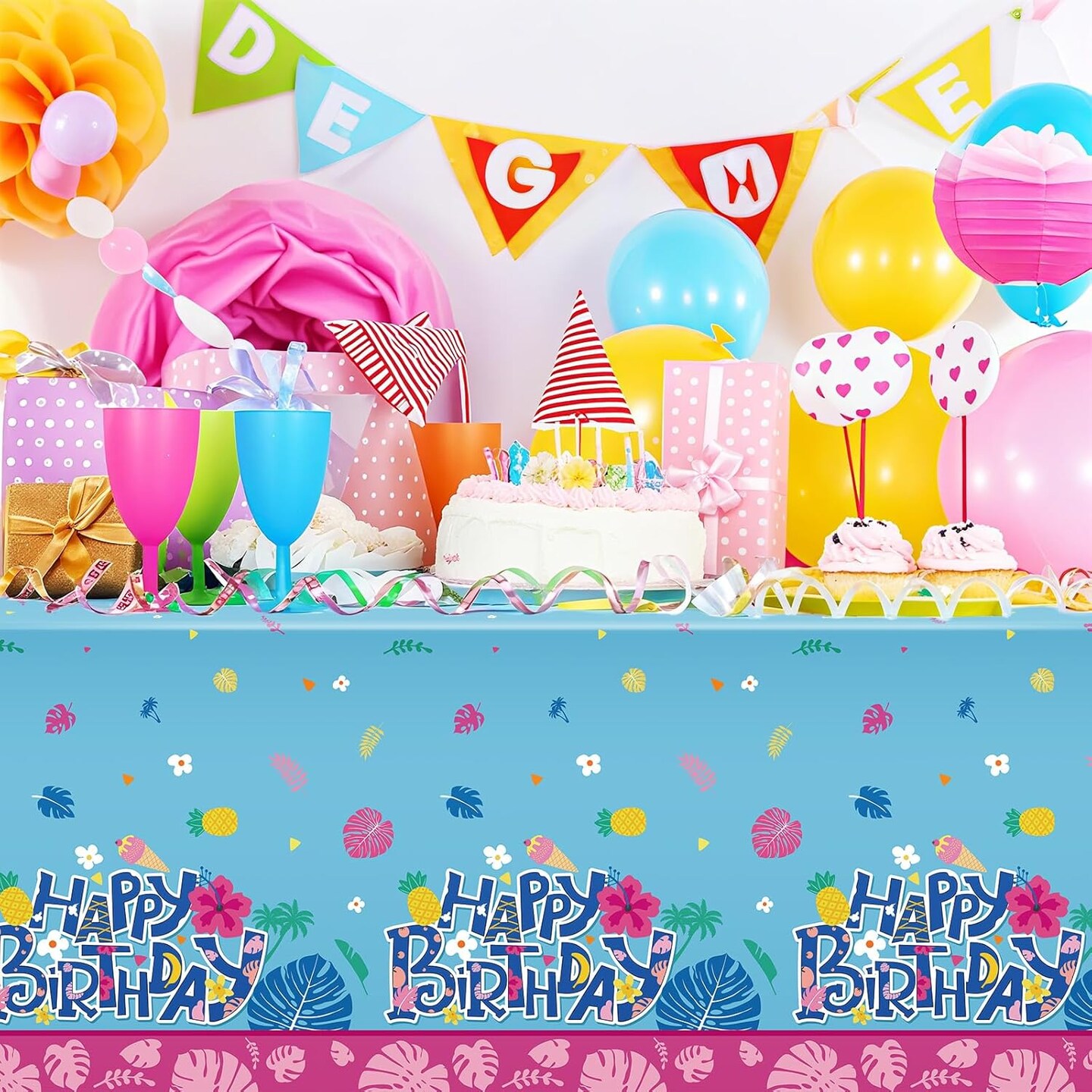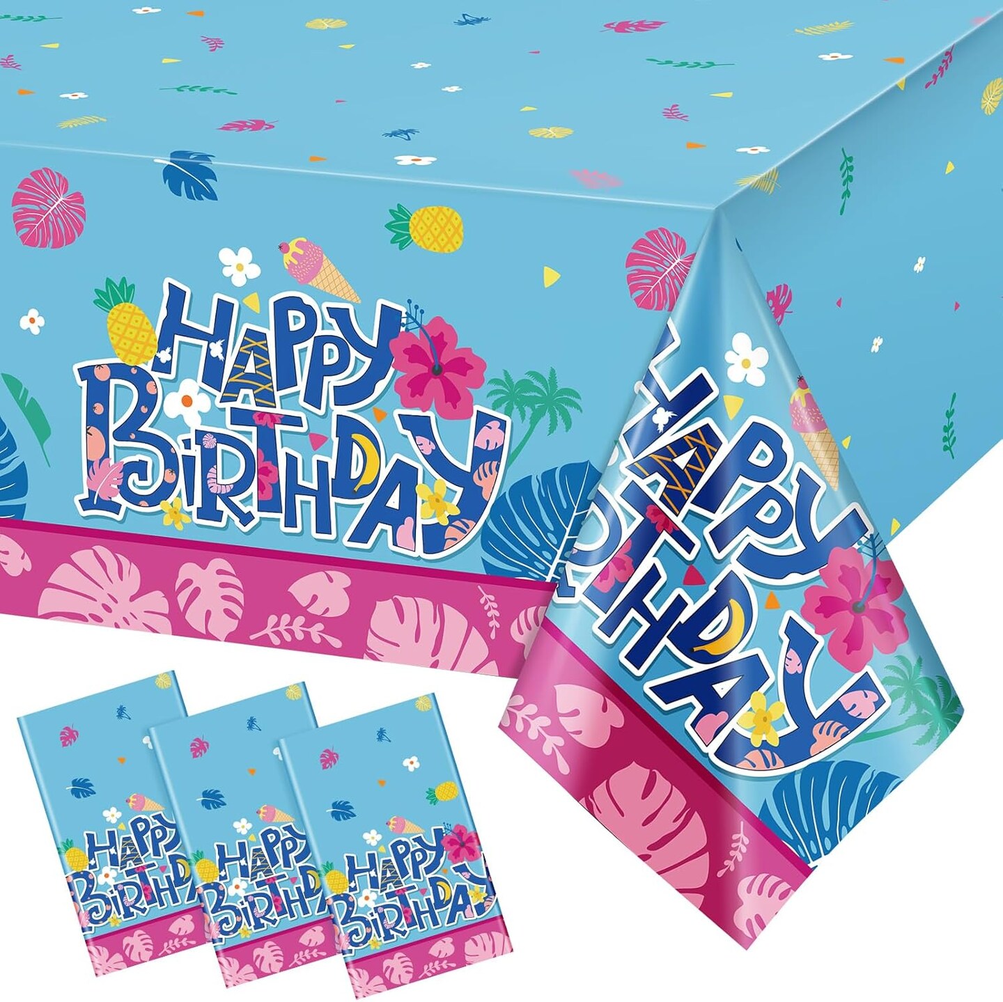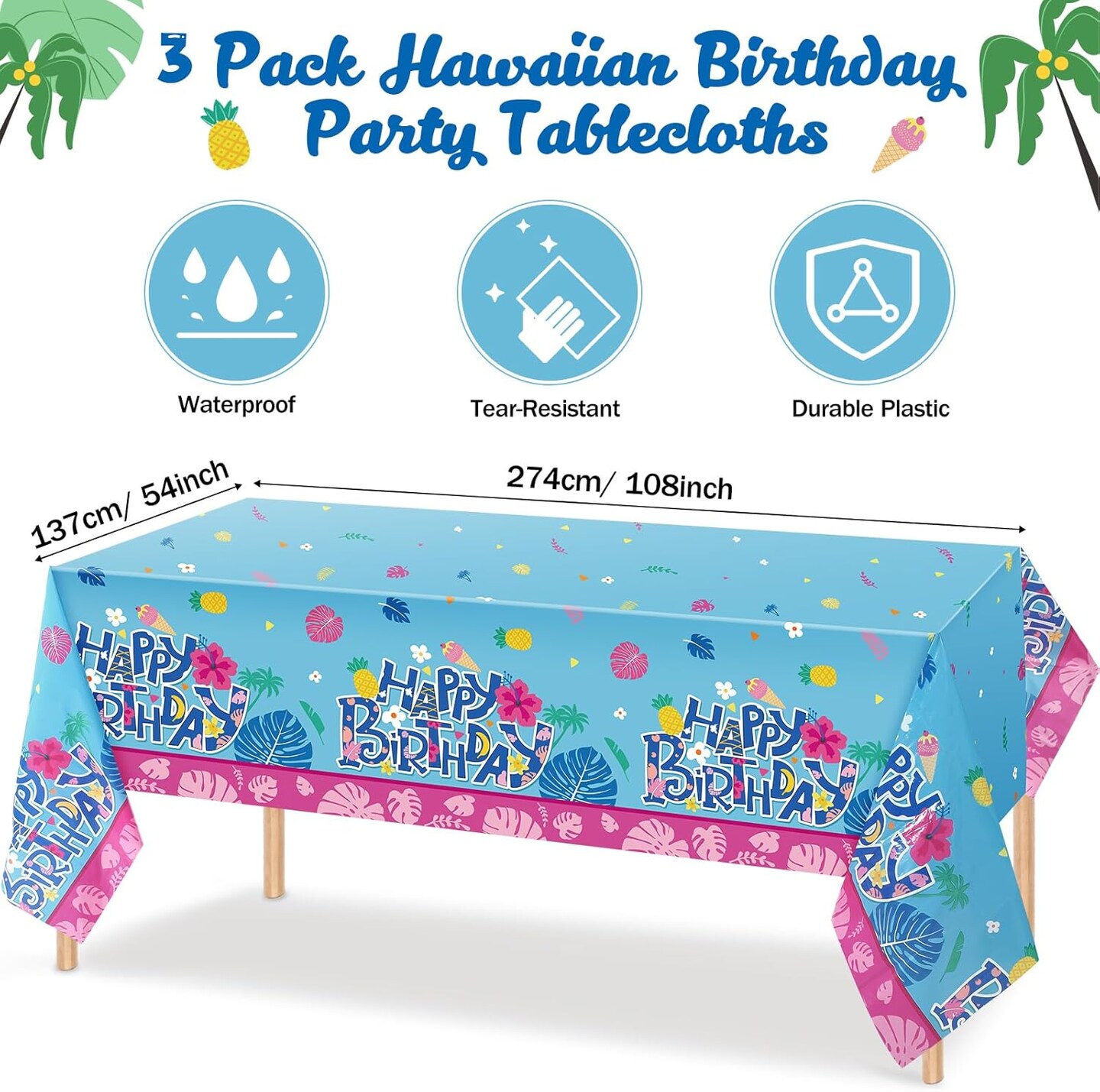 3 Pack Hawaiian Birthday Party Tablecloth Covers (108'' x 54'')