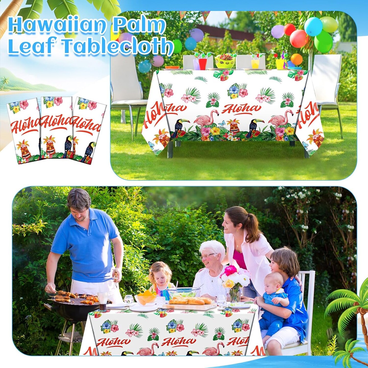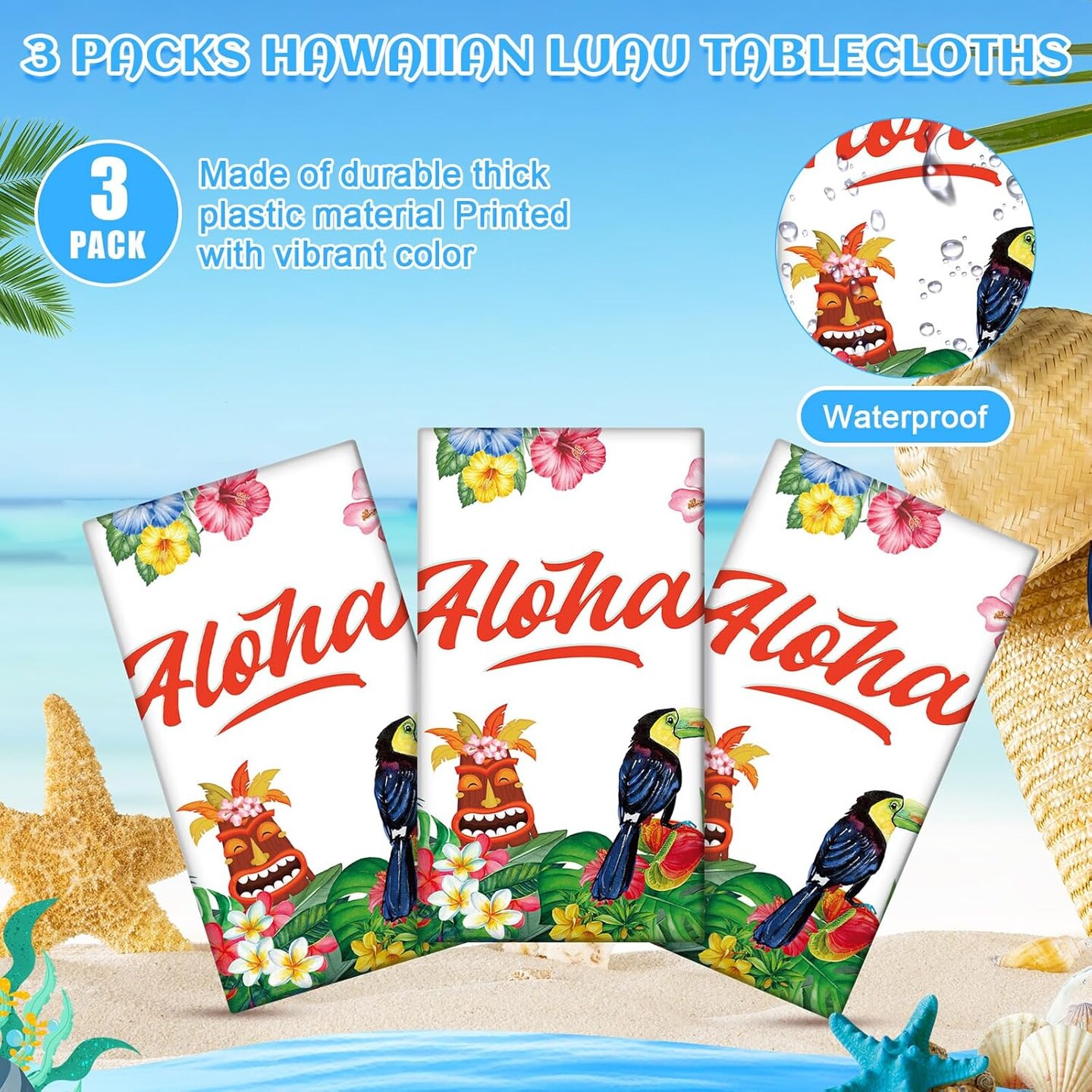 3 Pack Hawaiian Luau Table Covers Tiki Party Tablecloth Tablecloths 108 x 54 in