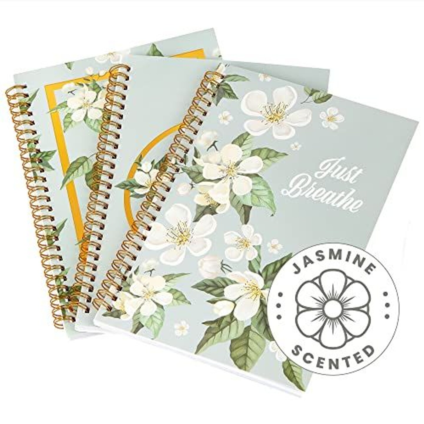 [3 Pack] Jasmine Scented Notebook Set with Long Lasting Aroma - 6" X 9" Spiral Notebooks with Coordinating Designs - Relaxing Floral Aroma Journals for Writing to Help You Unwind - Small Notebook Set