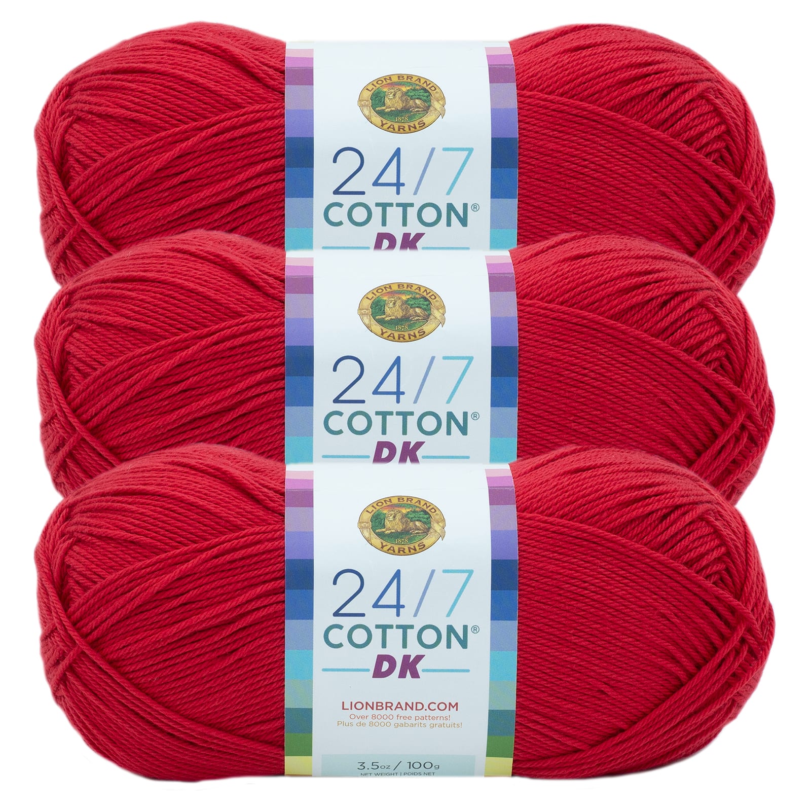 3 Pack Lion Brand® 24/7 Cotton® DK Yarn