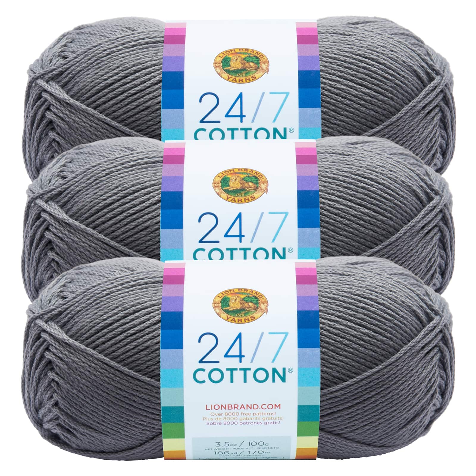 3 Pack Lion Brand® 24/7 Cotton® Yarn