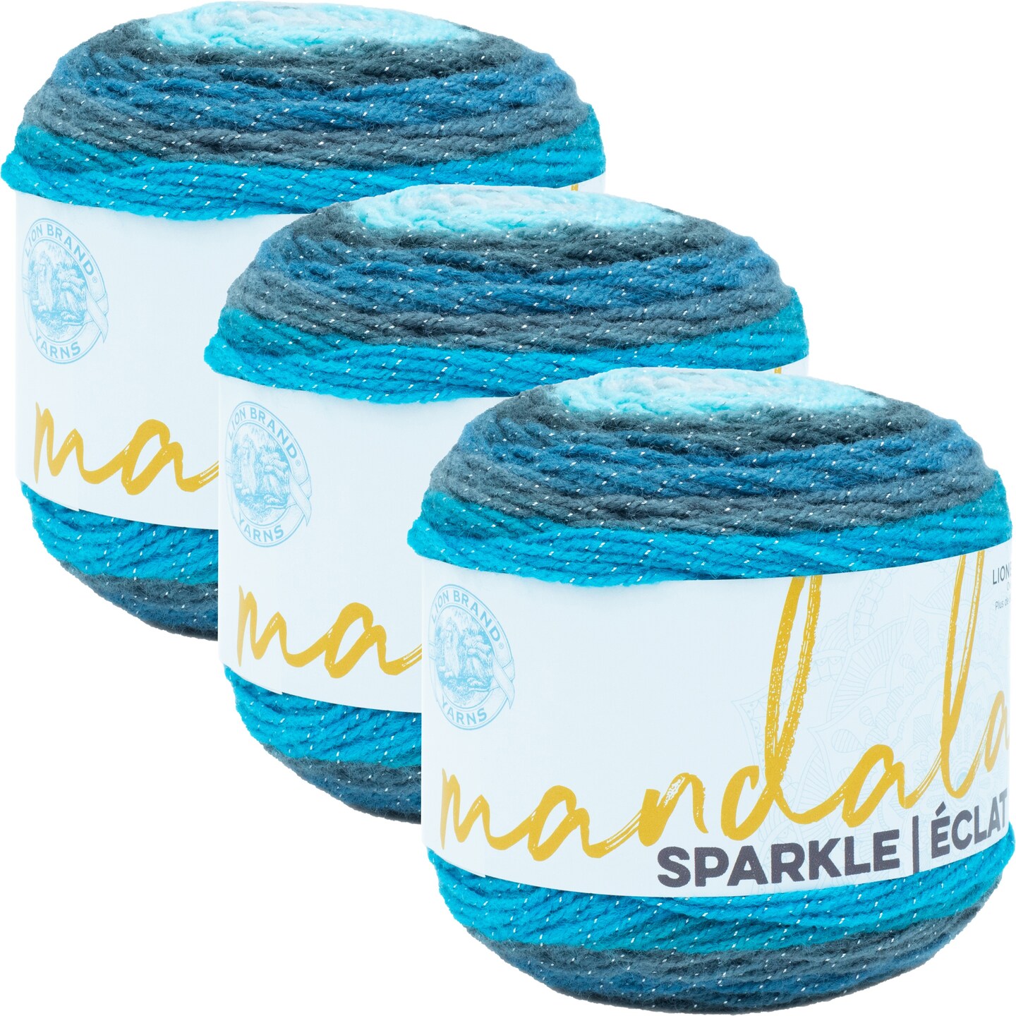 (3 Pack) Lion Brand Mandala Sparkle Yarn - Aquarius