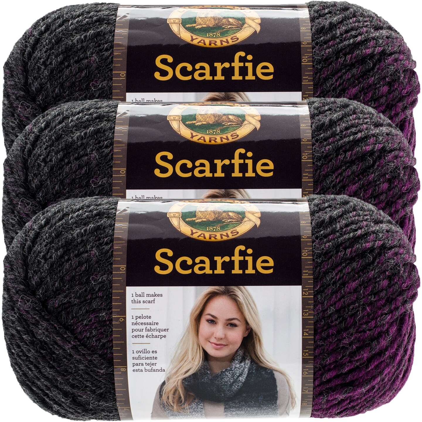 (3 Pack) Lion Brand Scarfie Yarn - Charcoal/Magenta