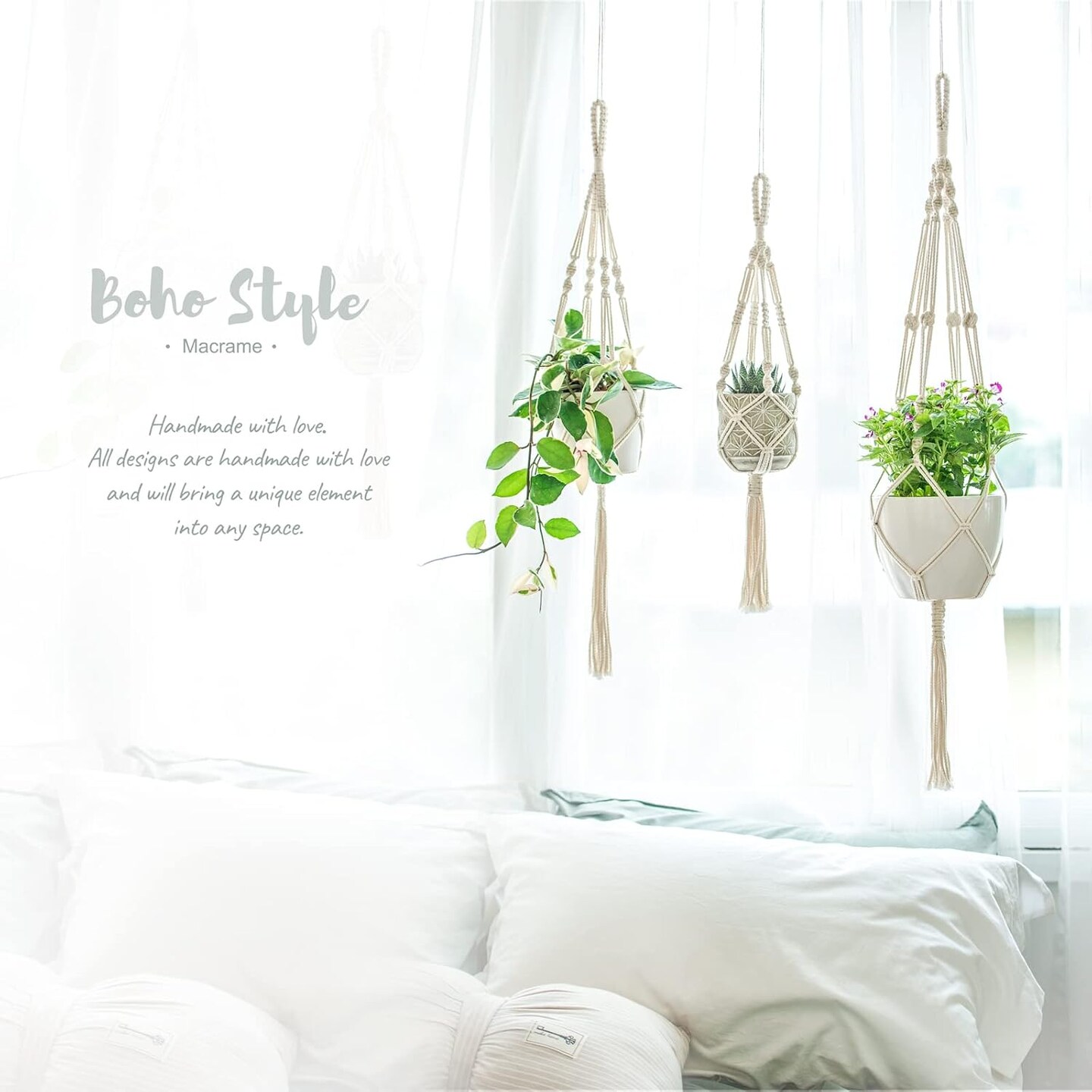 3 Pack Macrame Plant Hangers, Different Sizes Hanging Planters Indoor Basket Decorative (Ivory)