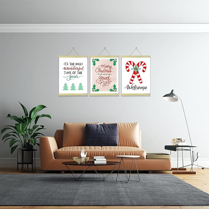 3 Pack Magnetic Poster Hanger Frame Natural Wooden Color 12x16 12x18 12x20 12x24 Poster Frame for Photo Picture Art Canvas Print Artwork Wall Hanging,Teak Wood 12''