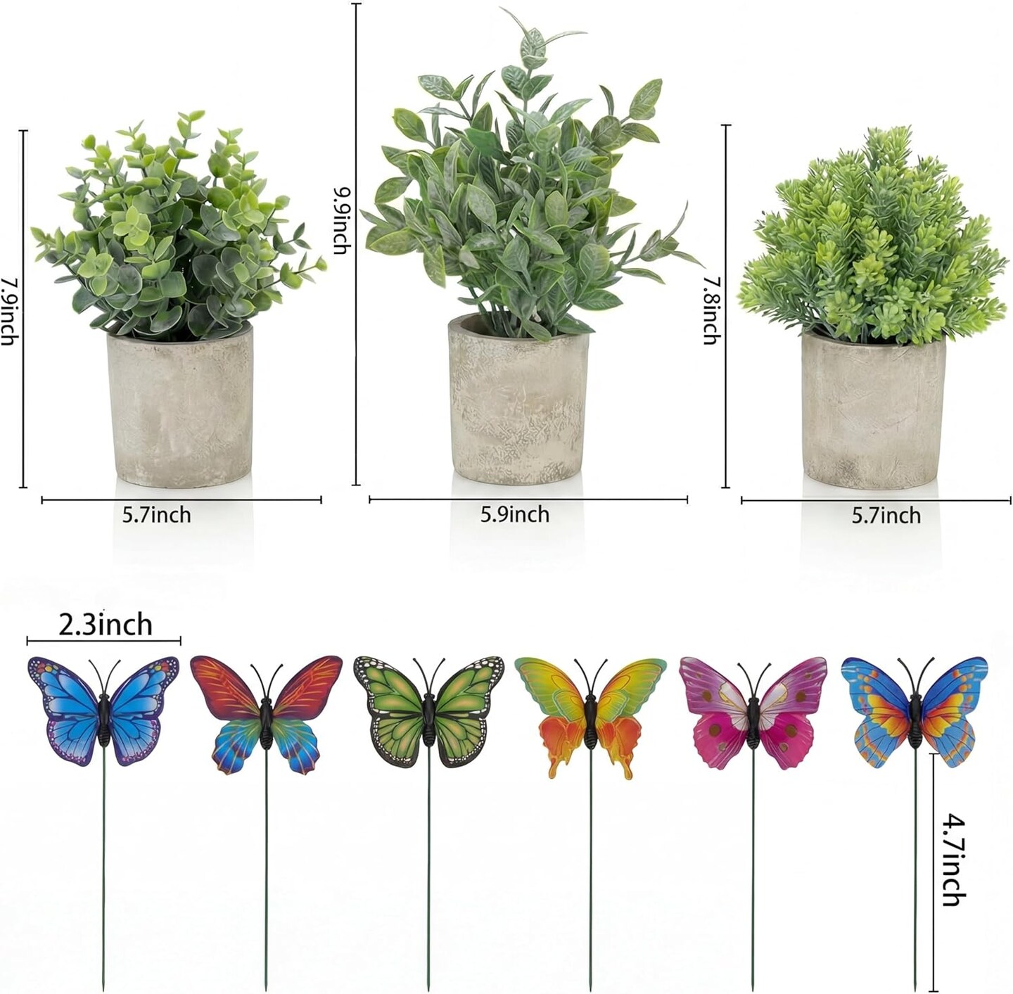 3 Pack Mini Potted Artificial Eucalyptus Plants with Butterflies – Faux Greenery Topiary Small Potted Plants for Farmhouse Home, Office, Bathroom, Desk & Shelf Decor