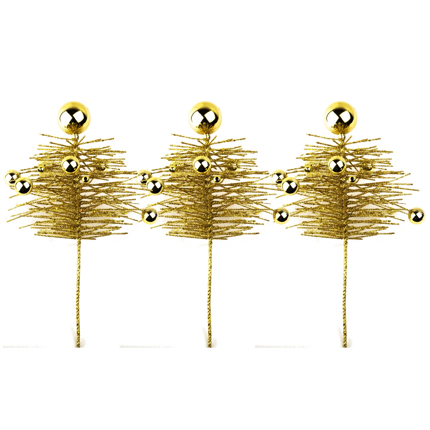 3 Pack of 16" Gold Pine Spray Picks with Ball Accents and Glitter Enhancements