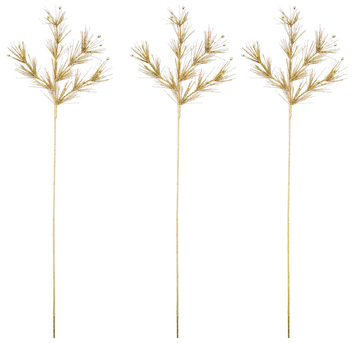 3 Pack of 36" Gold 4 Branch Pine Spray with Ball Accents and Glitter Enhancements