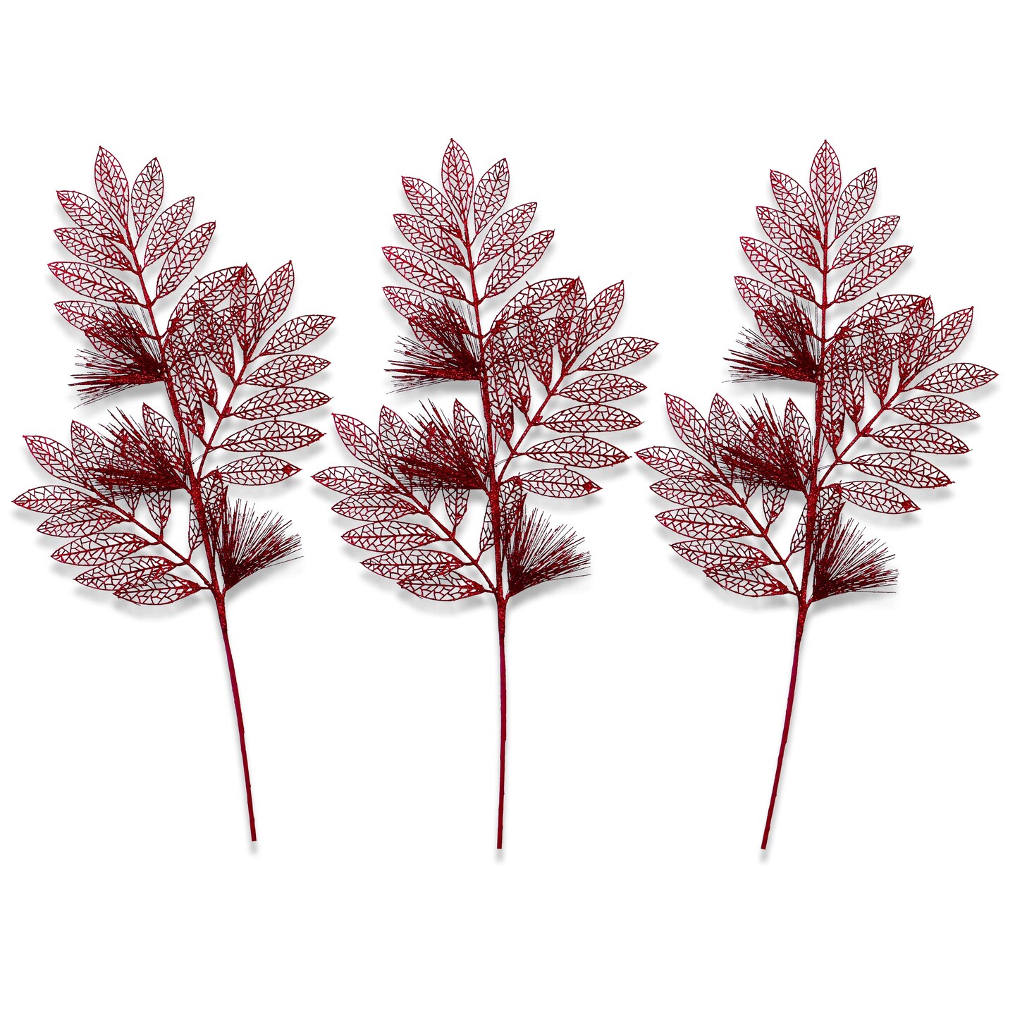 3 Pack of Burgundy Glitter Leaf and Spray Picks