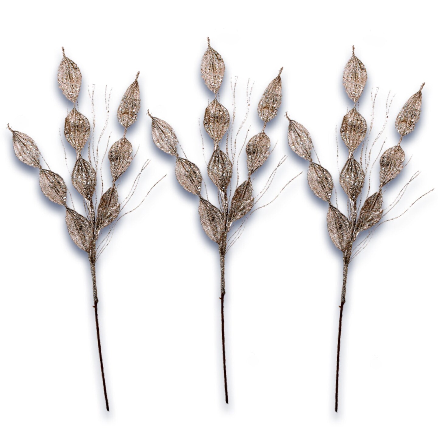3 Pack of Champagne Leafy Pick with Champagne Glitter Spray