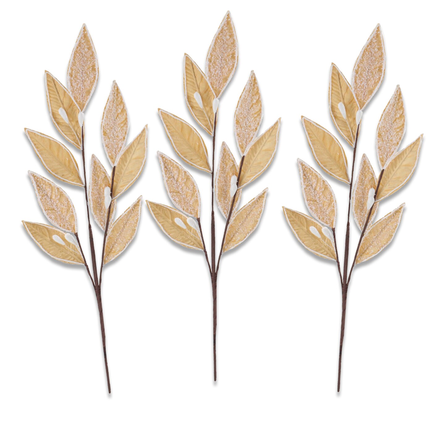 3 Pack of Gold Leafy Picks with Silver Glitter Accents