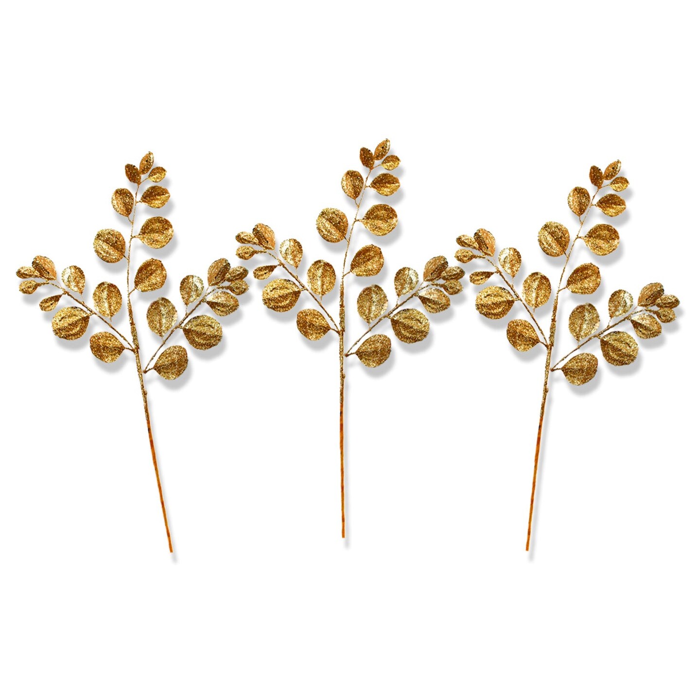 3 Pack of Rose Gold Round Leaf Glitter Picks