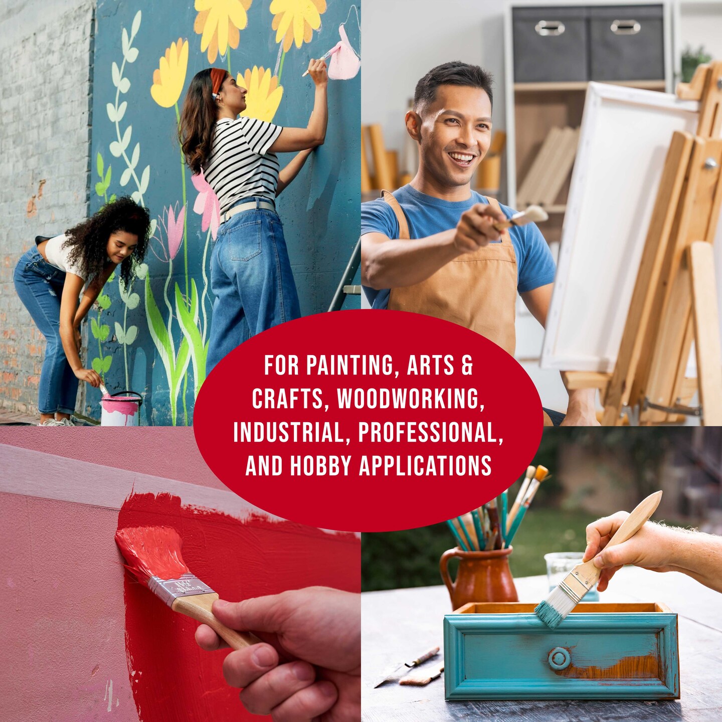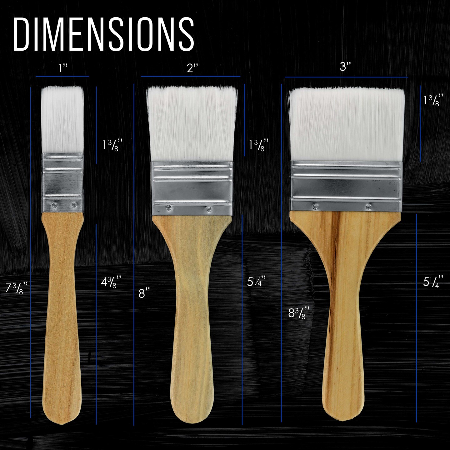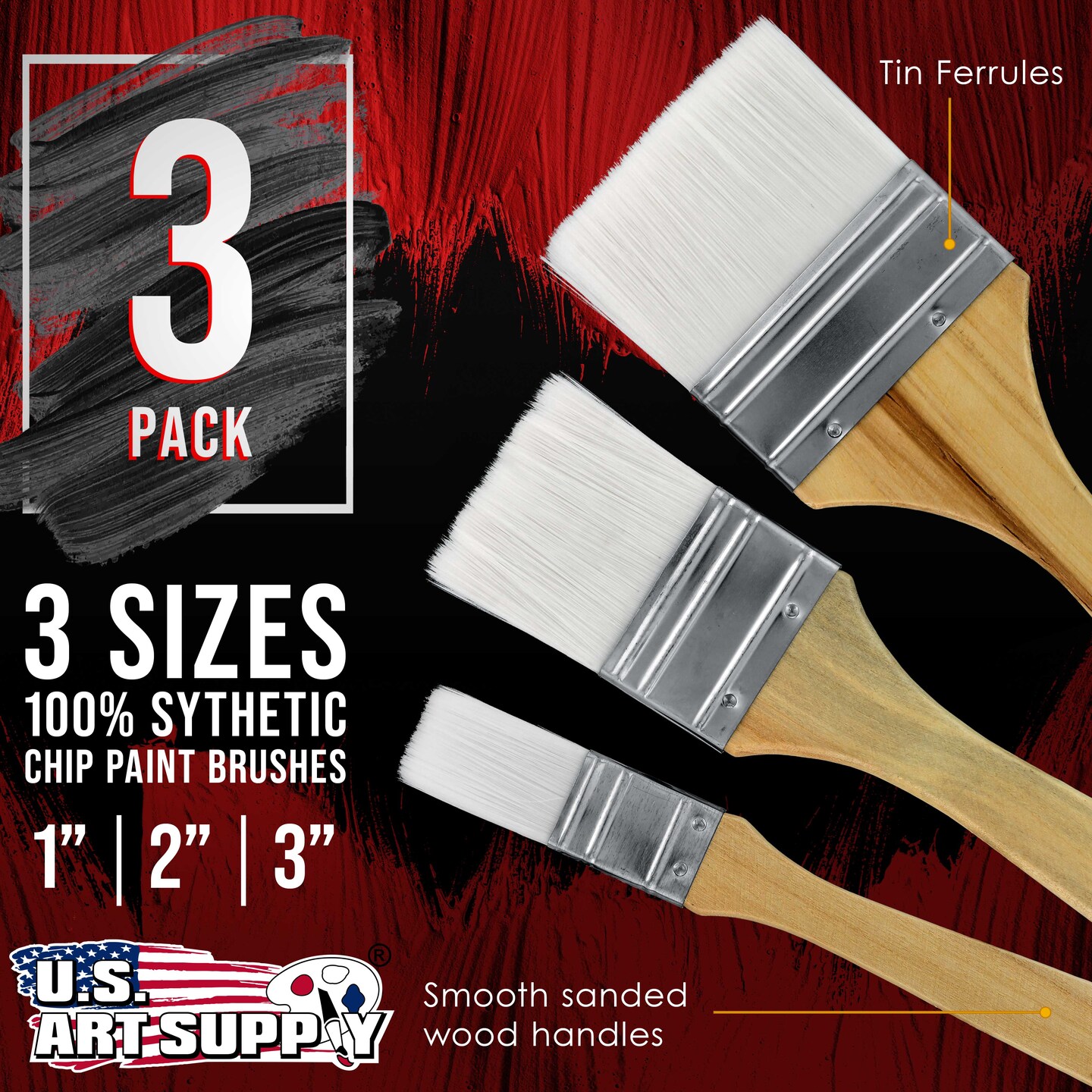 3 Pack of Variety Size Synthetic Bristle Paint, Chip and Utility Paint Brushes for Paint, Stains, Varnishes, Glues, and Gesso