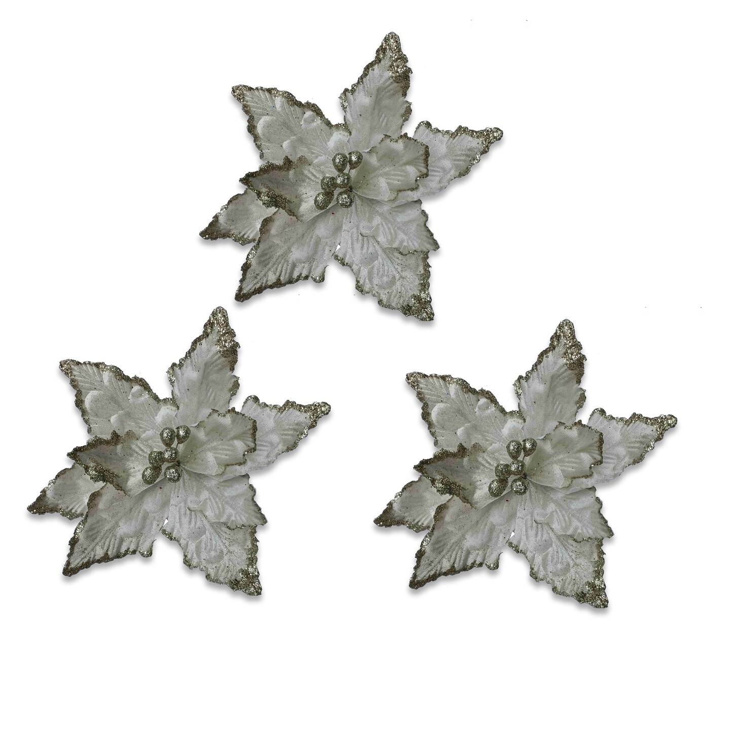 3 Pack of White Poinsettia Picks with Berry Centers