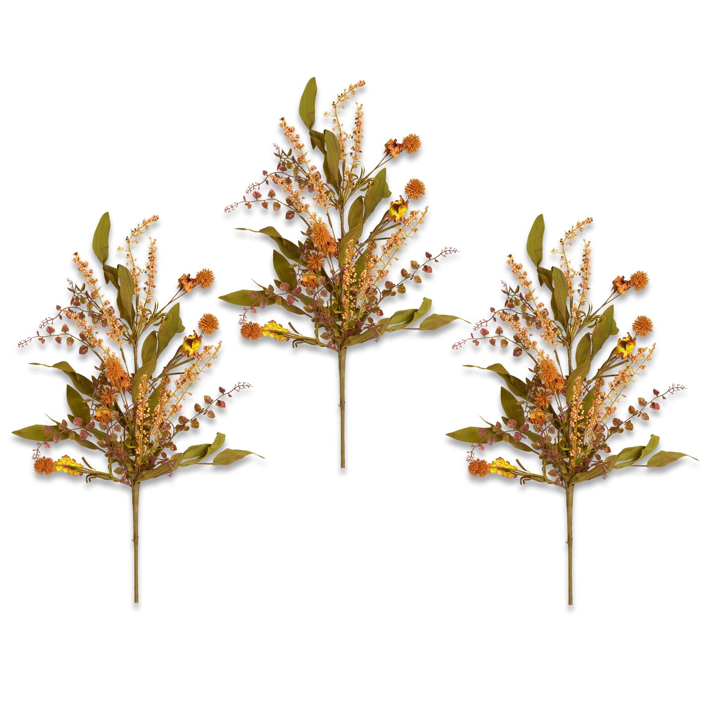 3 Pack of Yellow and Orange Sunflower Brown Floral Picks