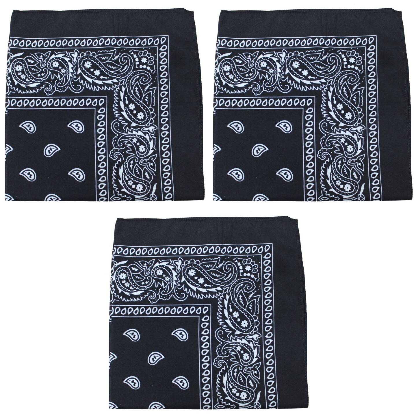 3 Pack Paisley Cotton Bandanas Classic Western Style Headwear