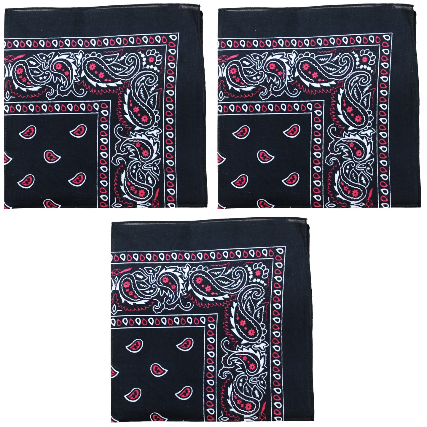 3 Pack Paisley Cotton Bandanas Classic Western Style Headwear