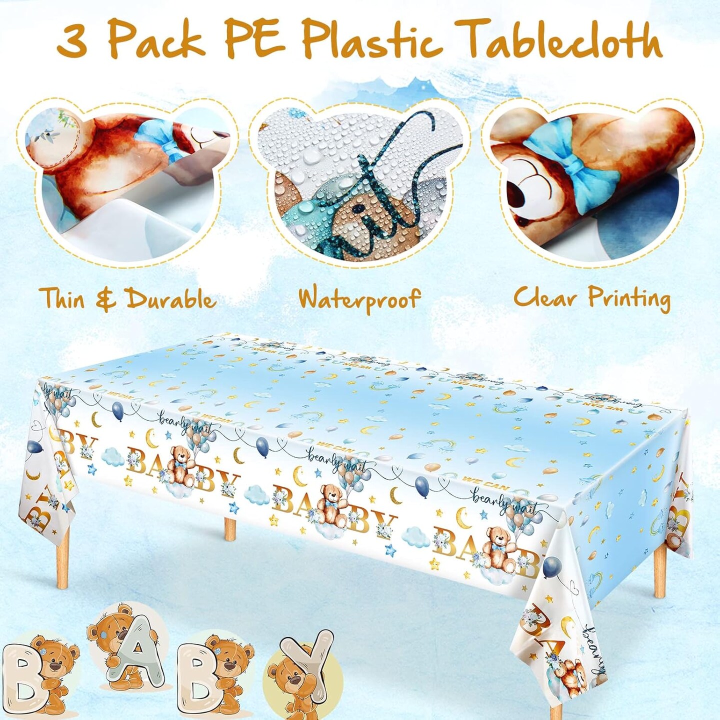 3 Packs Baby Shower Tablecloth