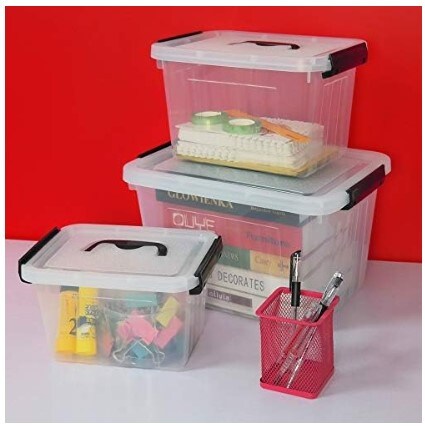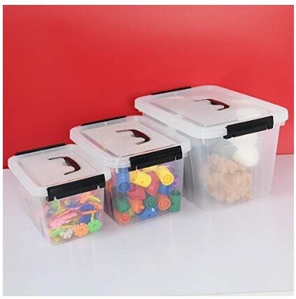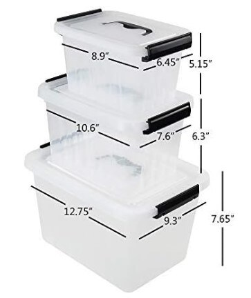 3 Packs of Clear Storage Bin, Plastic Stackable Box/Container with Lid and Black Handle