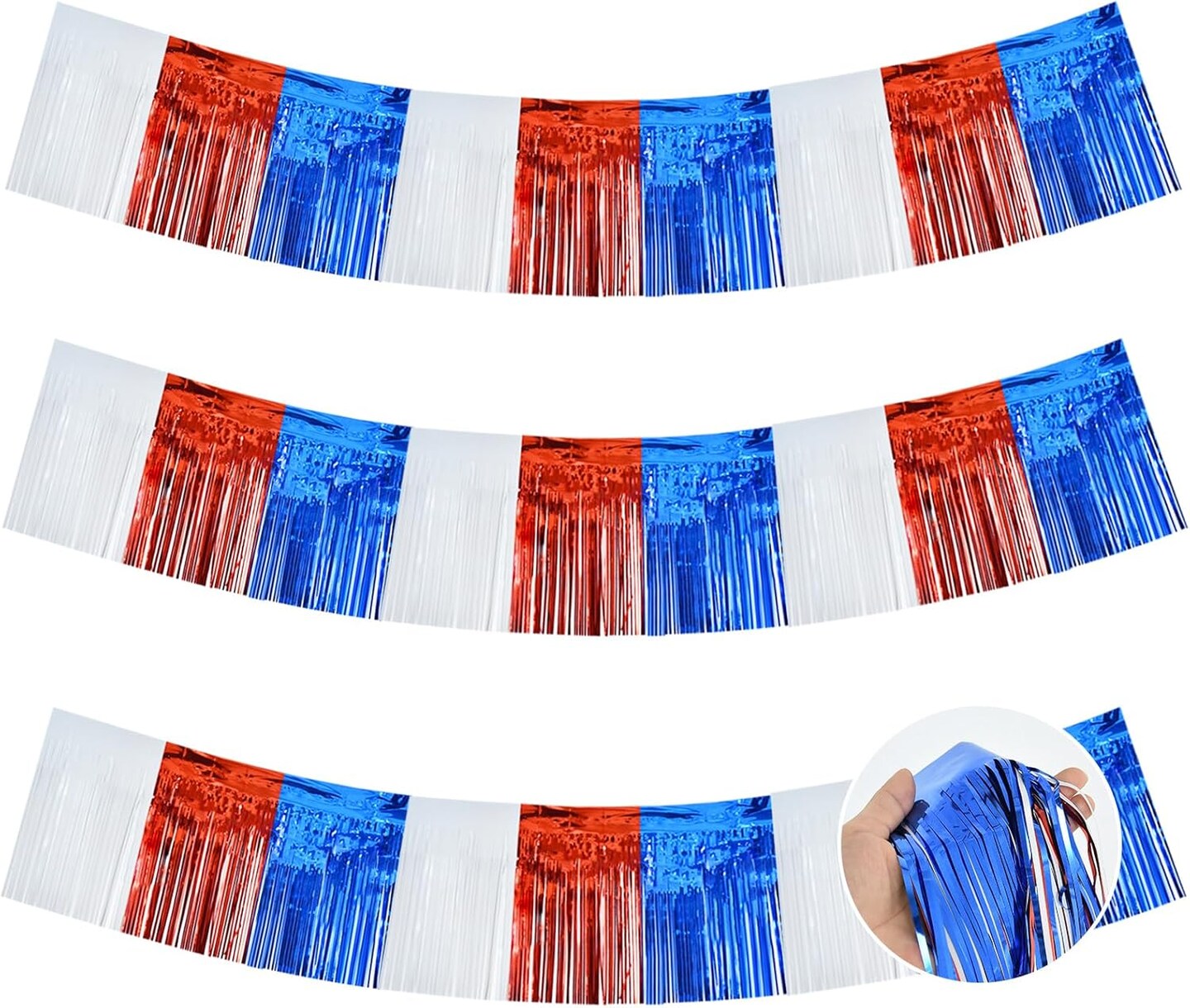 3 Packs Red White Blue Metallic Foil Fringe Garland Red White Blue Wall Hanging Tinsel Fringe Banners for Floats Birthday Bridal Shower Wedding New Year Party Decoration(30 Feet)