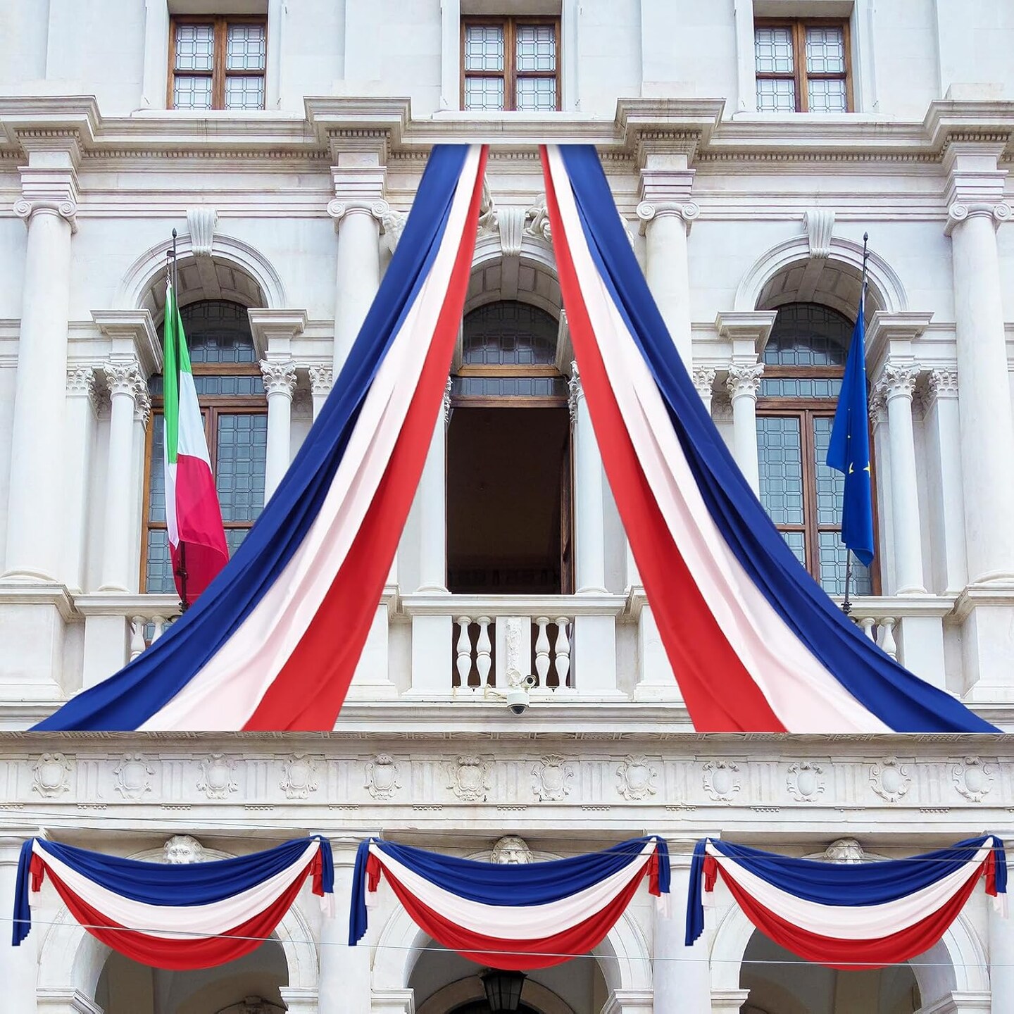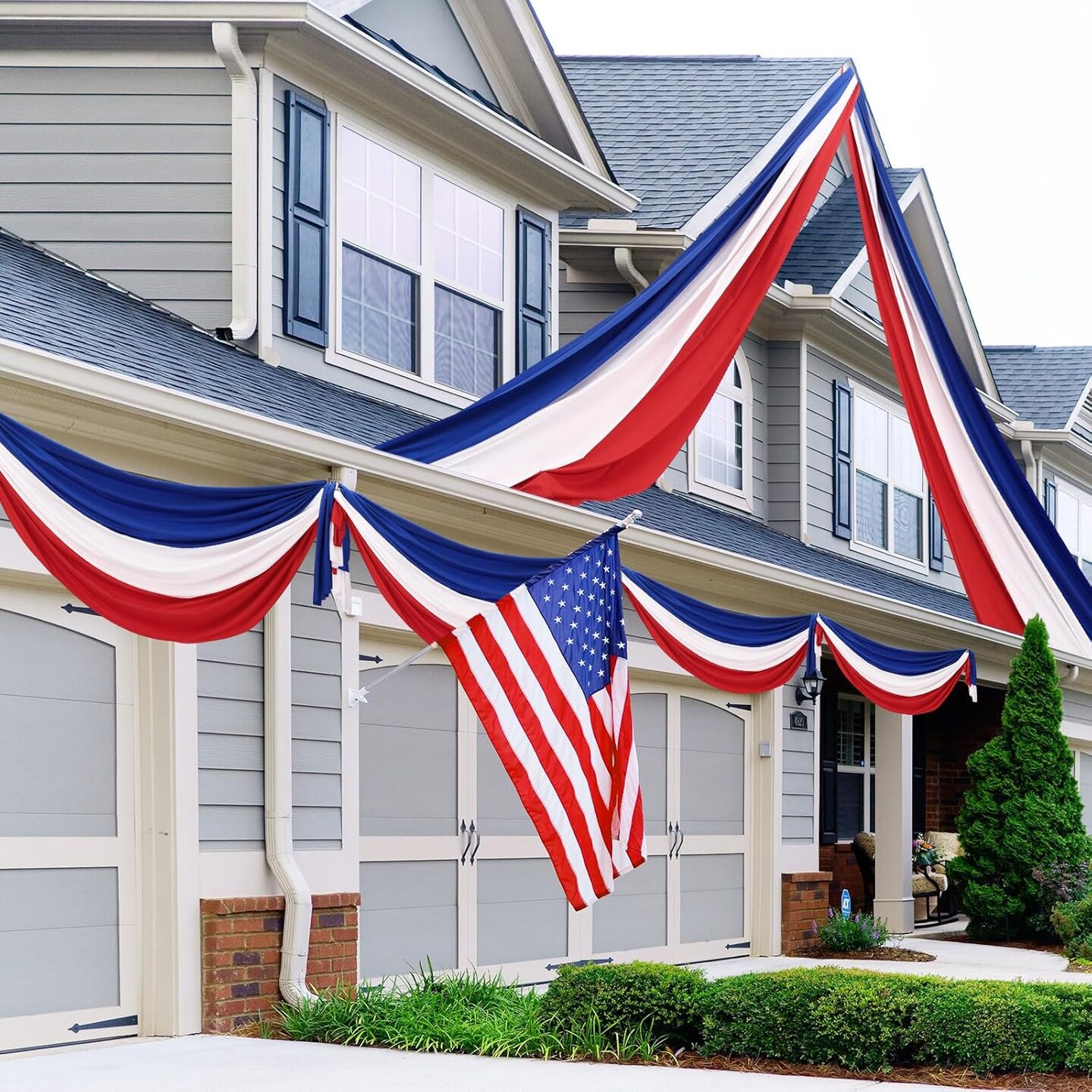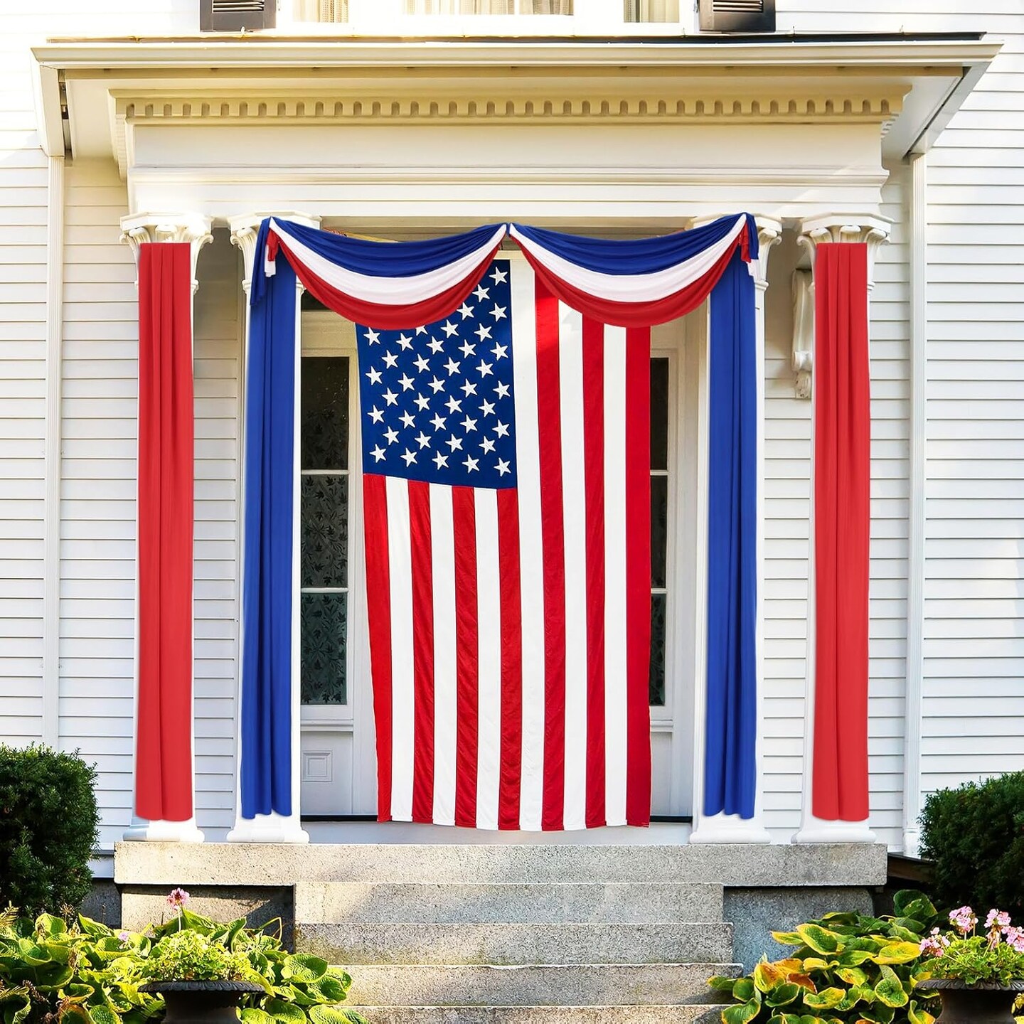 3 Pcs 2.5 x 19.7 ft 4th of July Patriotic Bunting Decorations Independence Day Memorial Day Decor Red White Blue DIY Hanging Bunting Flag