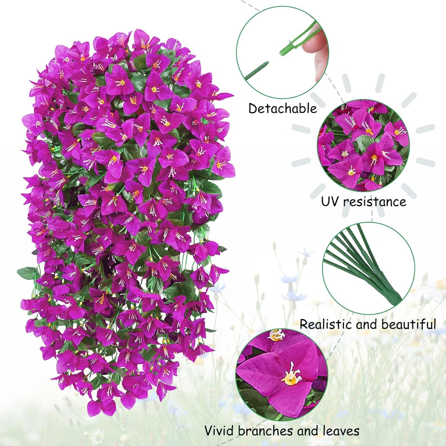 3 Pcs Artificial Hanging Bougainvillea Flowers
