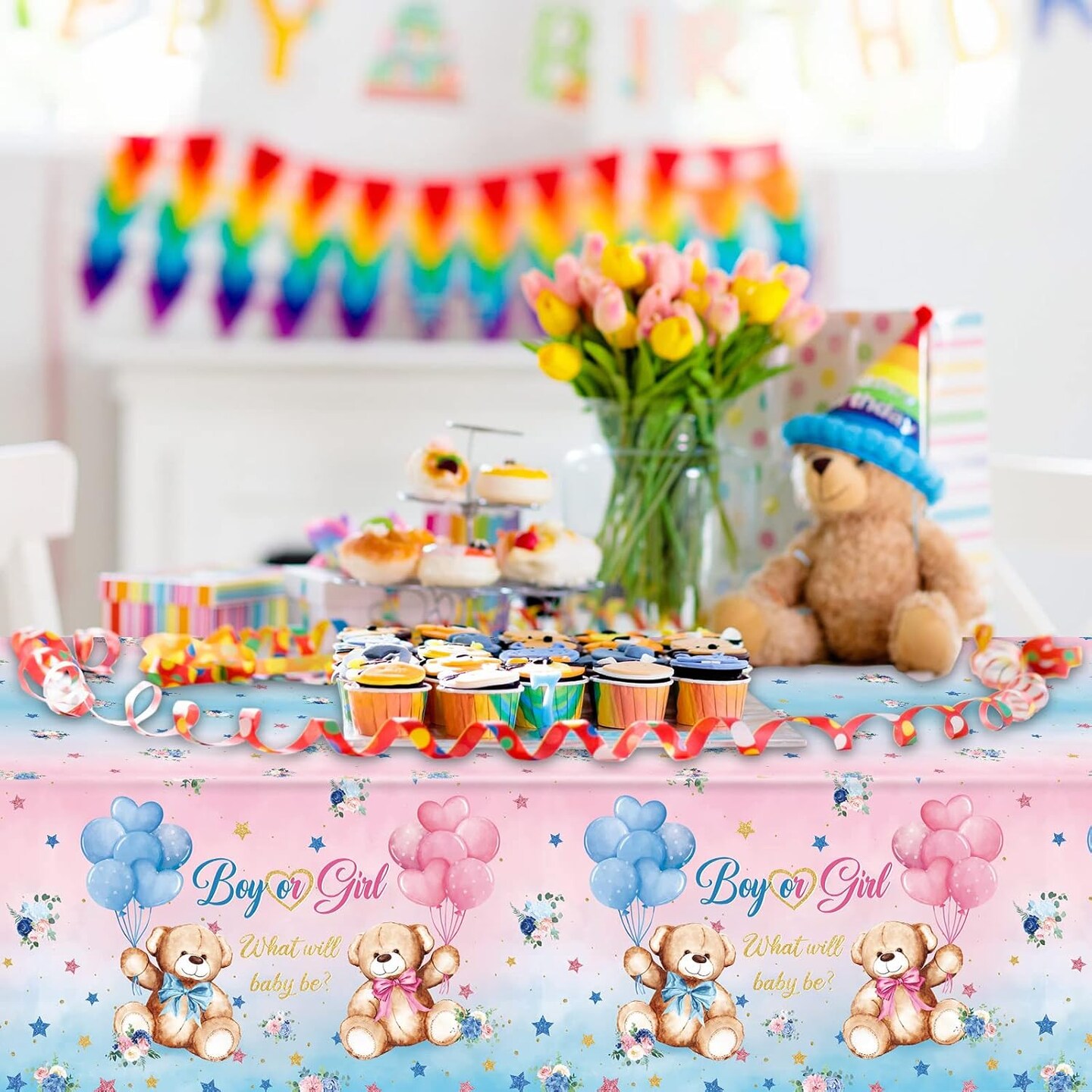 3 Pcs Bear Baby Shower Tablecloths Gender Reveal Table Covers Rectangle Plastic Bear Table Cloths for Baby Shower Gender Reveal Party Decorations