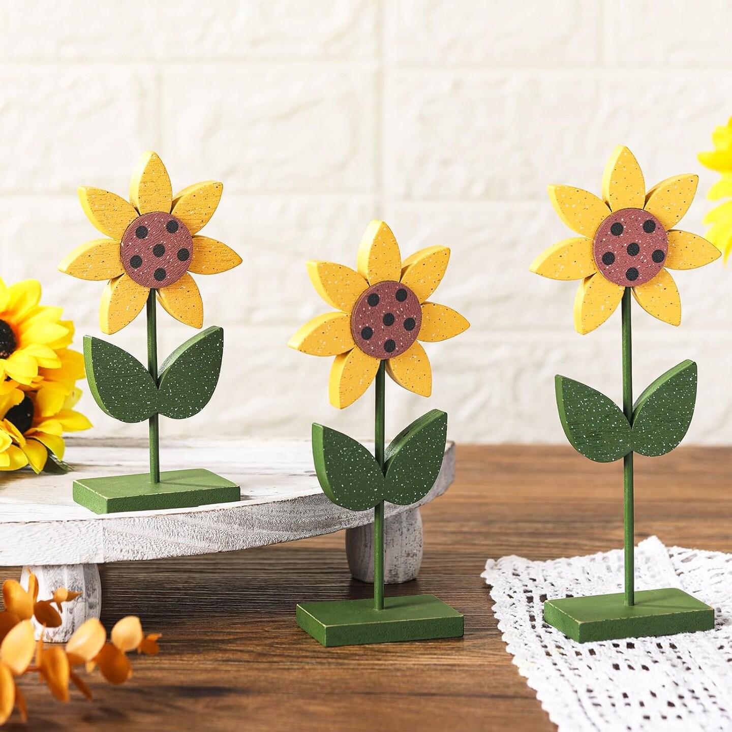 3 Pcs Bee Decor Summer Decorations Set Bee Tiered Tray Honeycomb Wood Table Signs Summer Wooden Tabletop Centerpiece for Party Office Home Bedroom Kitchen Farmhouse Baby Shower Bee(Sunflower)
