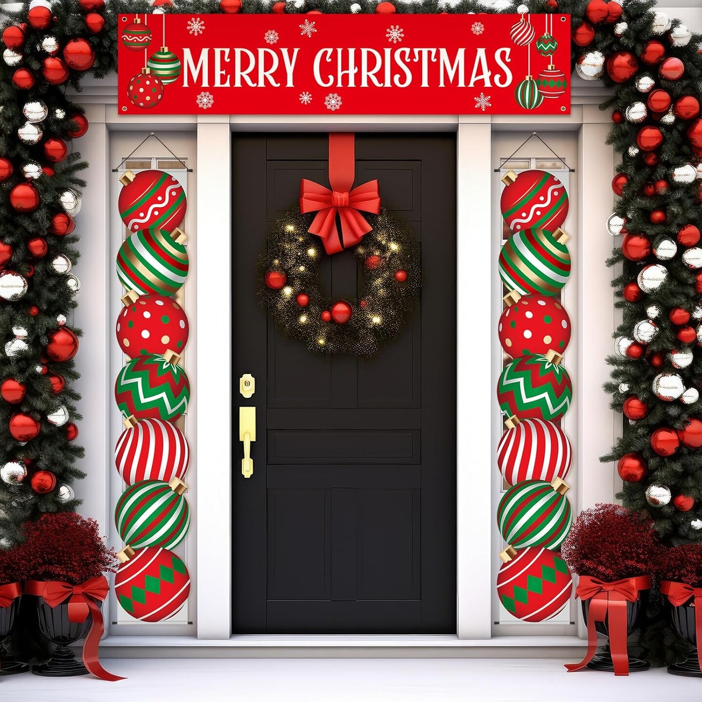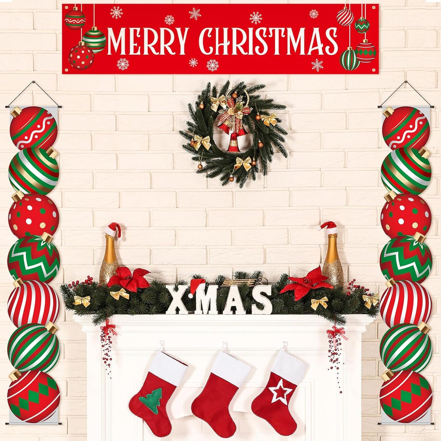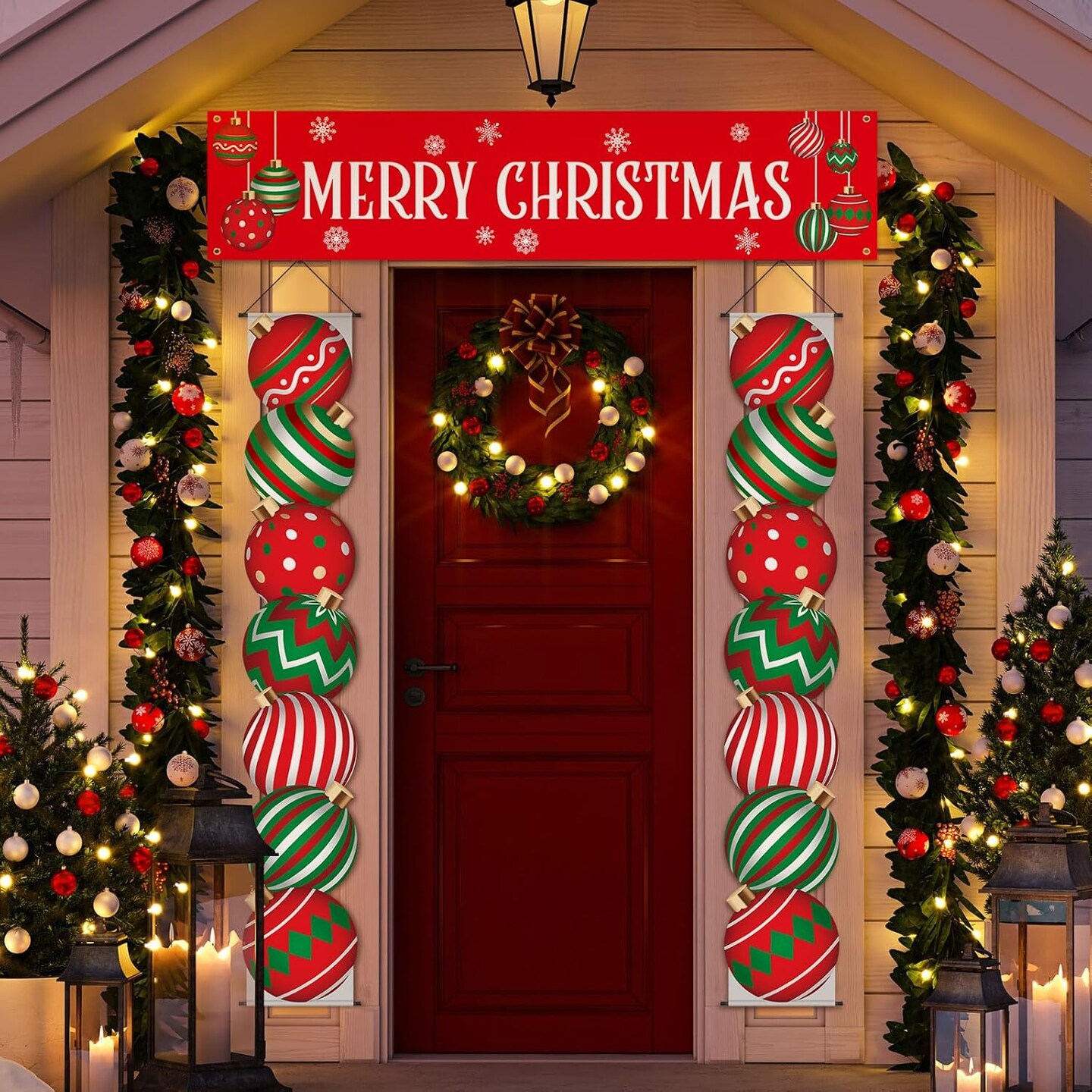 3 Pcs Christmas Decoration Outdoor Christmas Porch Sign for Front Yard Hanging,12 x 71 Inch(Red Green)